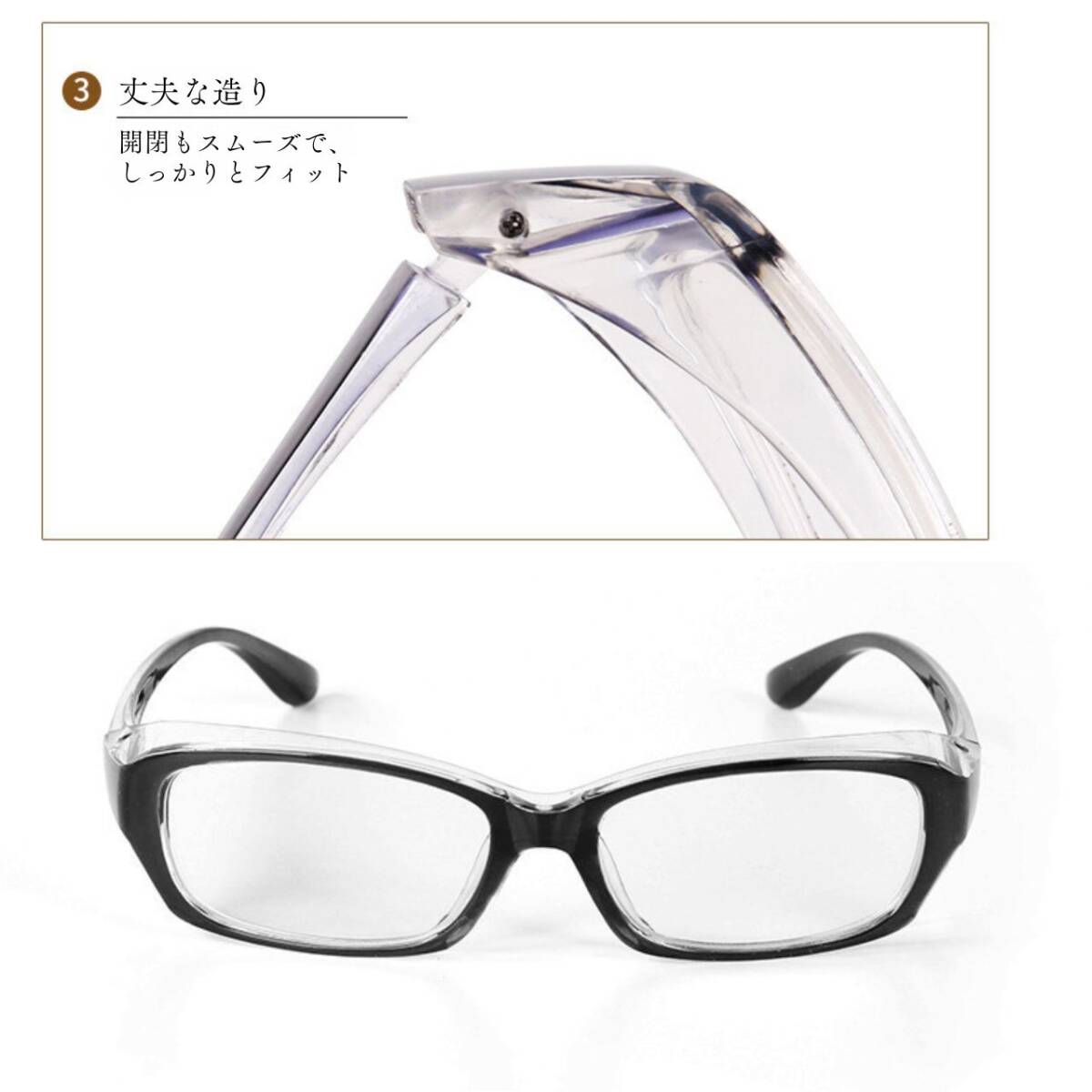 伊達メガネ【カラー】商品画像1枚目、タイトルをご確認ください。花粉症で毎日、目が痒い・・・・。鼻が詰まる・・・・。そんな方は必見です!マスク着用はバッチリでも、意外と無防備なのが目元。そんな悩みもこのシールド付きのメガネで軽減!花粉・ホコリ・飛沫対策で今まで以上に快適な生活を!■ フード付きメガネ顔のカーブに沿ったかたちでフレームにフードがついており、しっかりとフィットするので隙間ができにくく、外部からの侵入を軽減!■ 花粉対策花粉の最大の対策は、花粉を目に入れないこと!フィット感はもちろんのことフレームについているガードで花粉をブロック!■ ブルーライトカットブルーライトカットするレンズを採用。PC作業が多い方やスマホをよく操作する方でも安心して使用可能!フードは目立ちづらく普段使いのおしゃれなメガネとしてもお使いいただけます。ご自身のお好みのカラーをお選びください!関連ワード花粉メガネ 花粉メガネ 花粉 花粉対策 めがね 眼鏡 花粉対策 めがね 眼鏡 花粉対策 グッズ カバー 粉塵対策 黄砂対策 紫外線対策ハウスダスト軽減 伊達メガネ おしゃれ UVカット 防塵対策 メンズ セルフレーム カバー フード付き 軽量 水洗いOK ブラック クリアレンズ