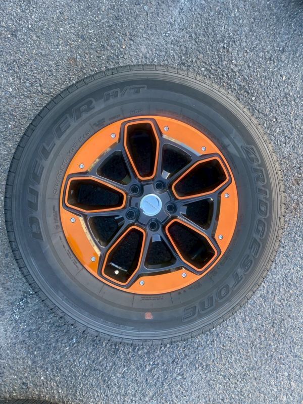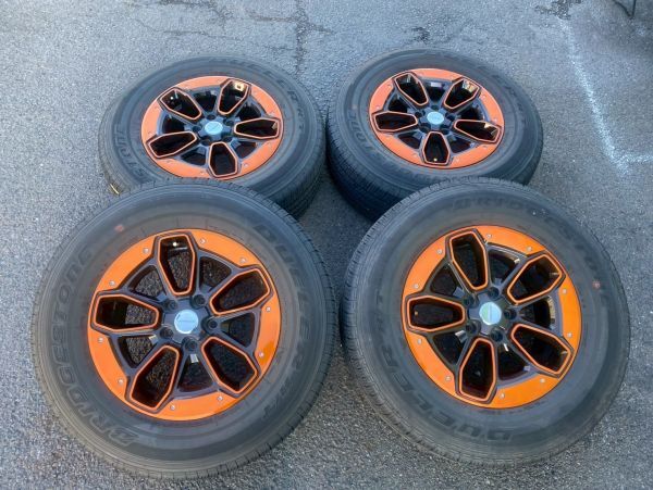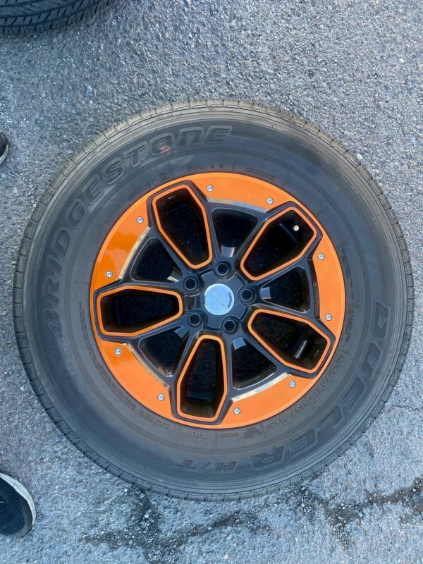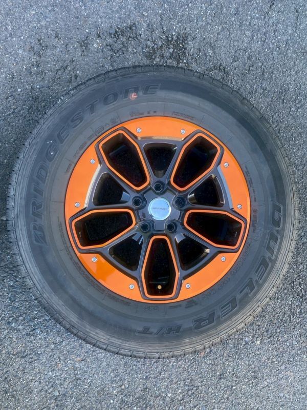 | 【 商品内容 】 ホイールとタイヤ4本セット 【 取り外し車両 】 ・車種:JEEP ラングラー JL オーバーランド ・年式:2019年 ・走行距離:44,862km 【タイヤ詳細】 ・メーカー:BRIDGESTONE ・シリーズ:DUELER H/T ・サイズ:255/70R18 ・製造年:2019年15週目 ・溝の状態:画像参照 【 ホイール詳細 】 ・メーカー:JEPPESEN ・リム径:18インチ ・リム幅:8J ・オフセット:+38 ・PCD:127 ・ボルト穴:5穴 ・状態:中古品につき、小傷・汚れあり。 詳細は画像をご確認下さい。 |