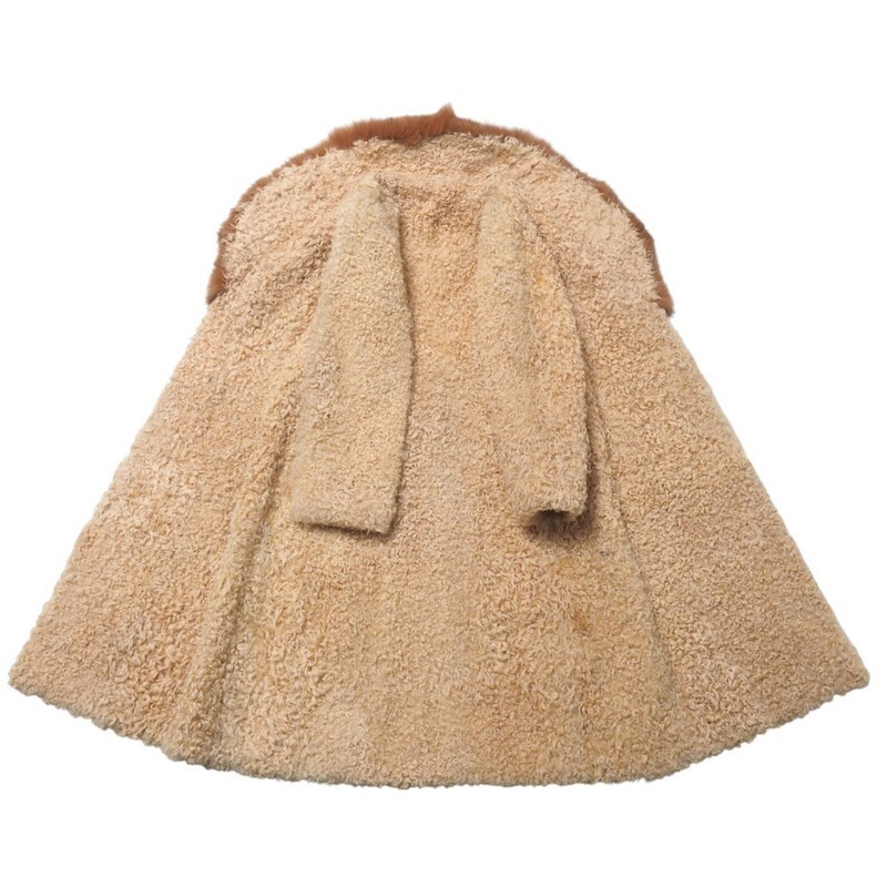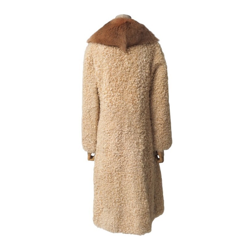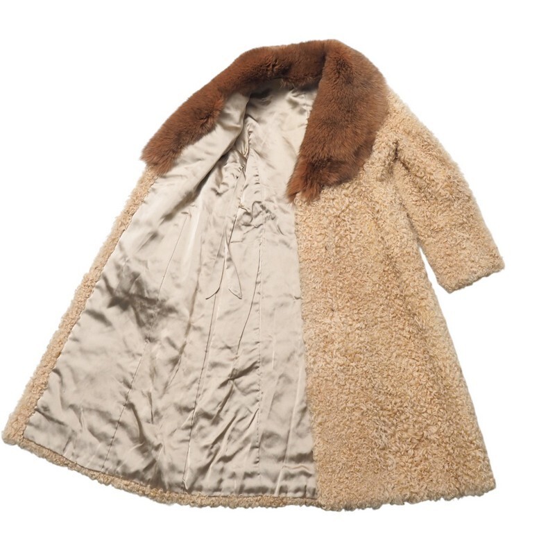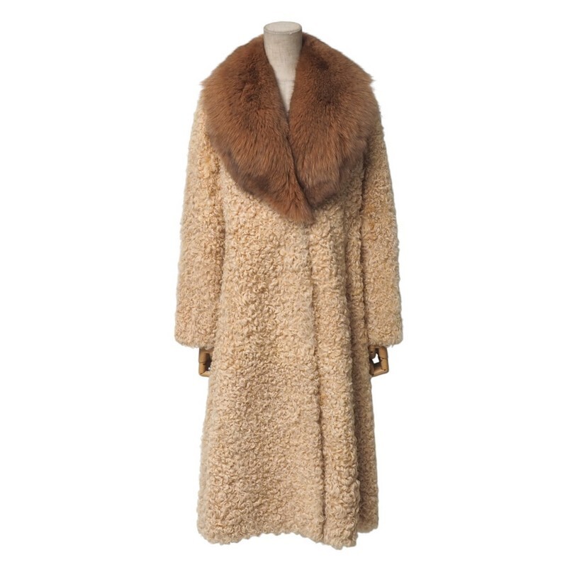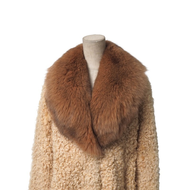 | MI2996★毛皮 ラムファー 襟:フォックスファー ロングコート ファーコート ベージュ M~L相当 着丈:約105cm | |||