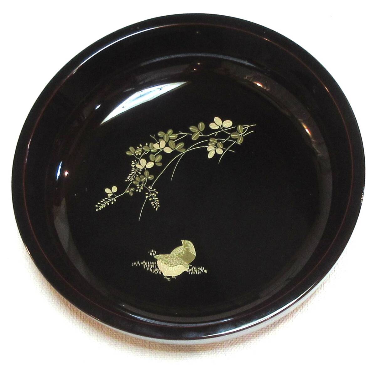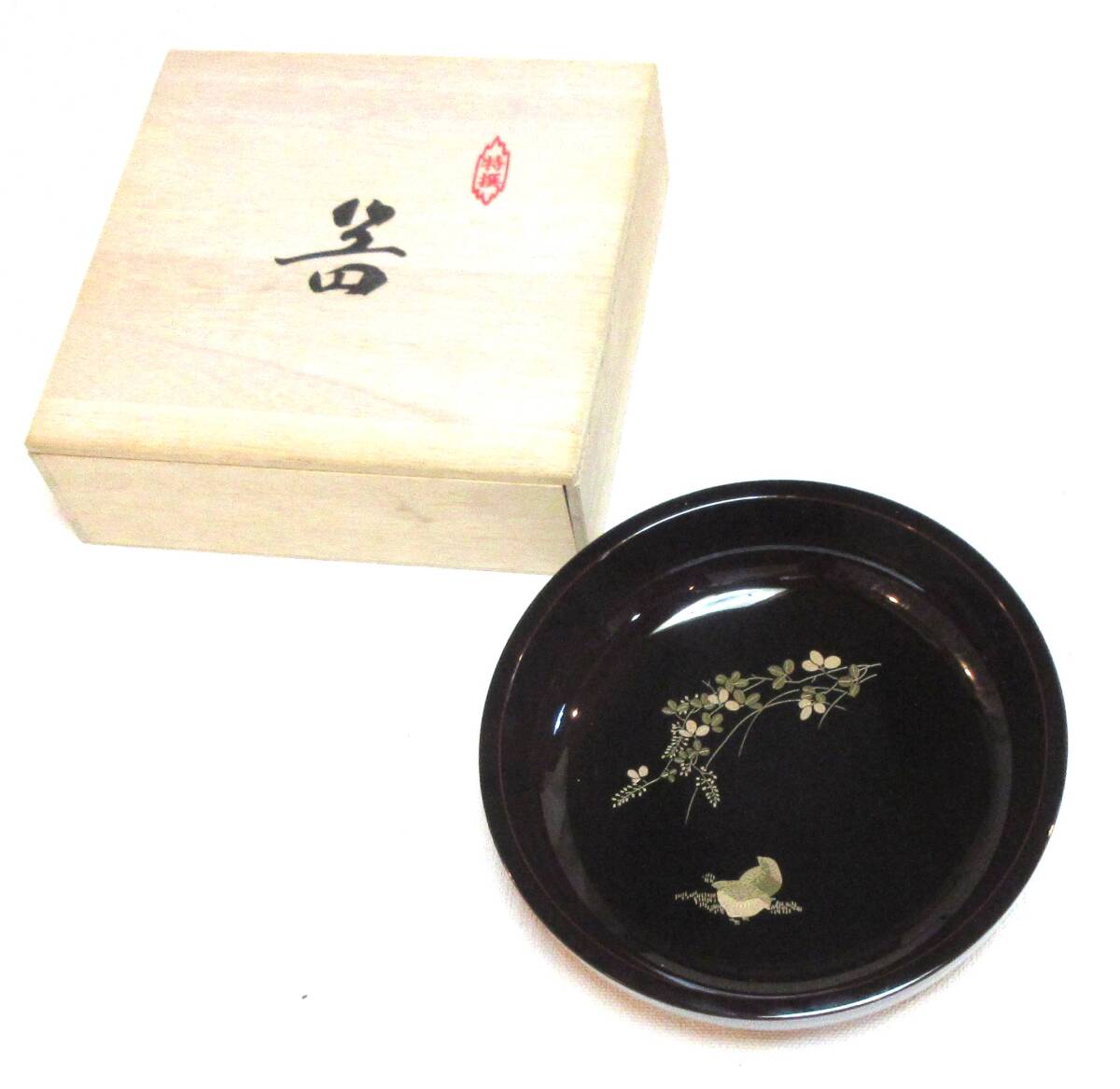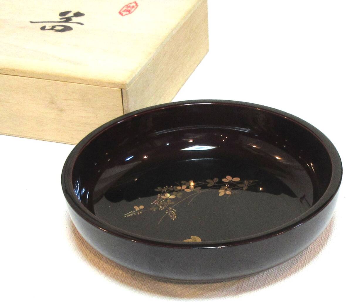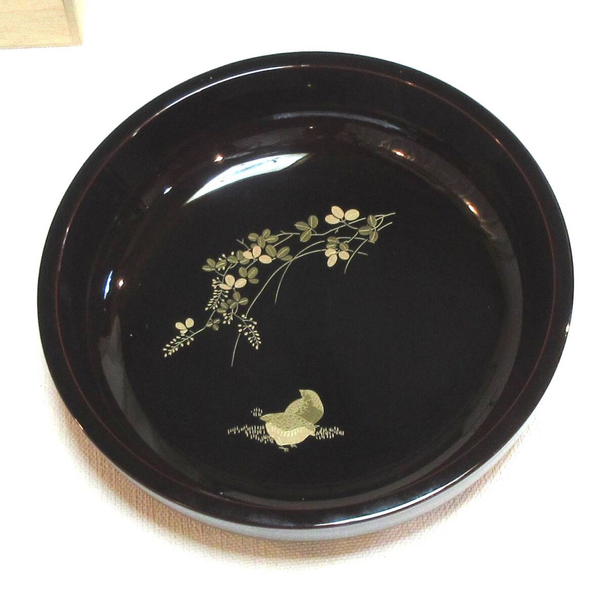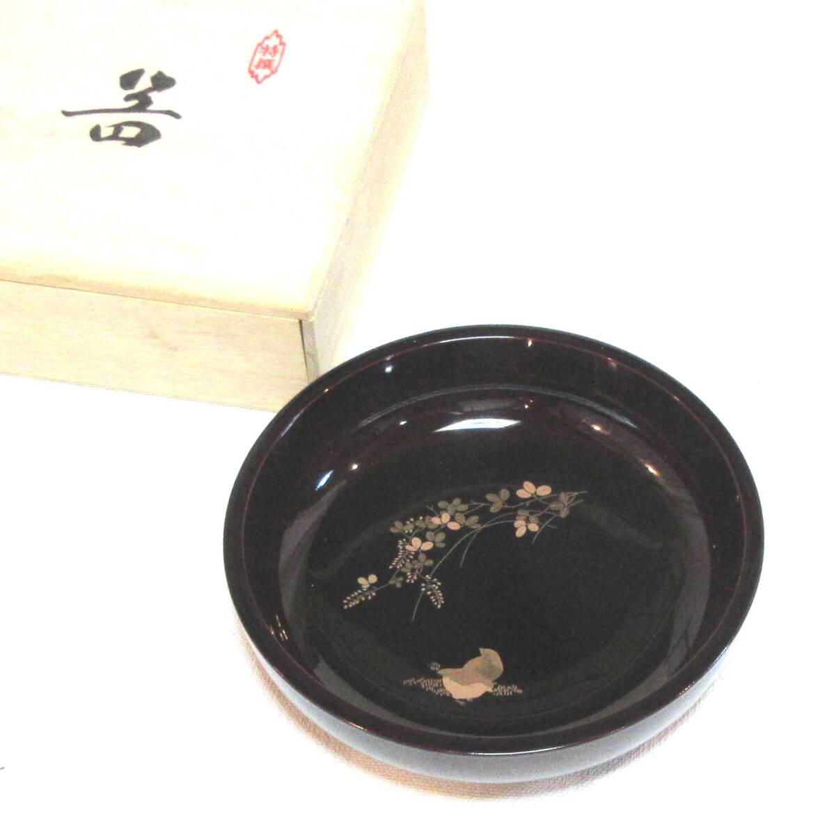 ★艶やかな蒔絵の美★会津塗 菓子鉢 溜 萩にうずら 木箱入 ★送料無料 | ||||