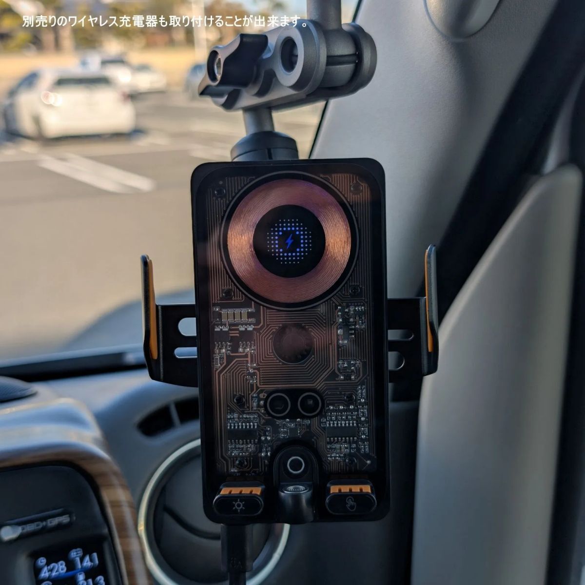 サイズさえ合えばレ-ダ-探知機や小型ナビを固定してもGOOD!