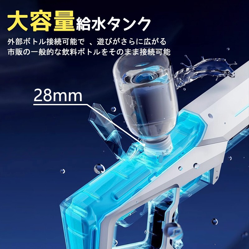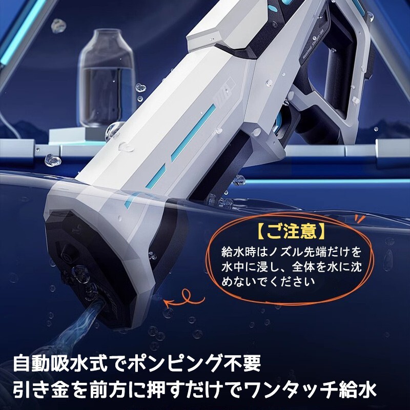 タンクに差すだけで自動で給水。トリガーを引くだけで連続発射が可能!