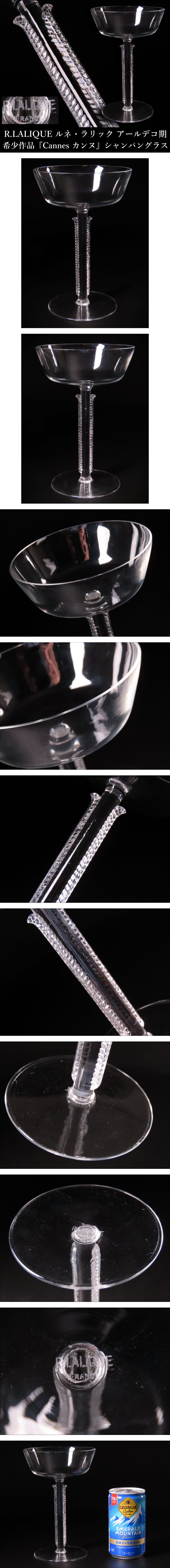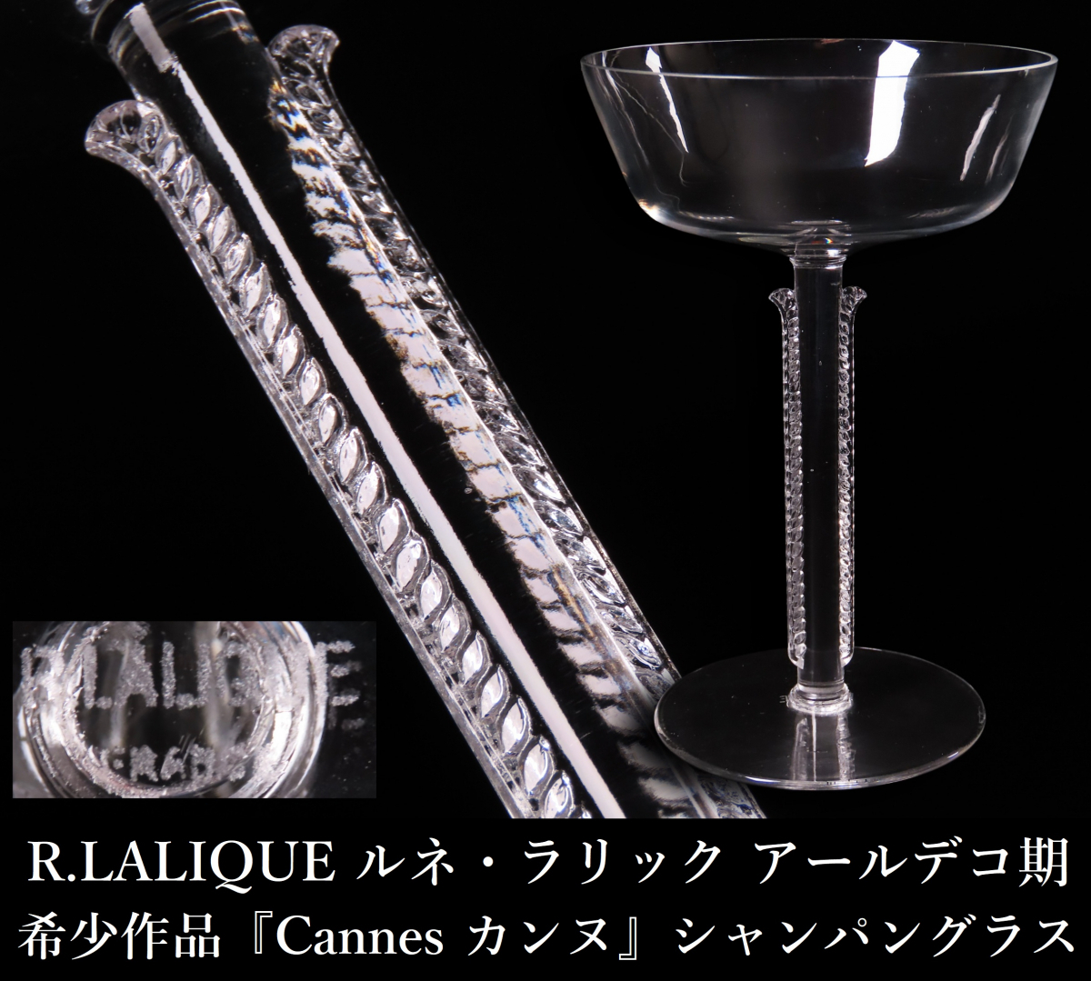 【ONE'S】R.LALIQUE ルネ・ラリック アールデコ期 希少作品 『Cannes カンヌ』 シャンパングラス 高15.5cm クリスタル 西洋美術 | |||