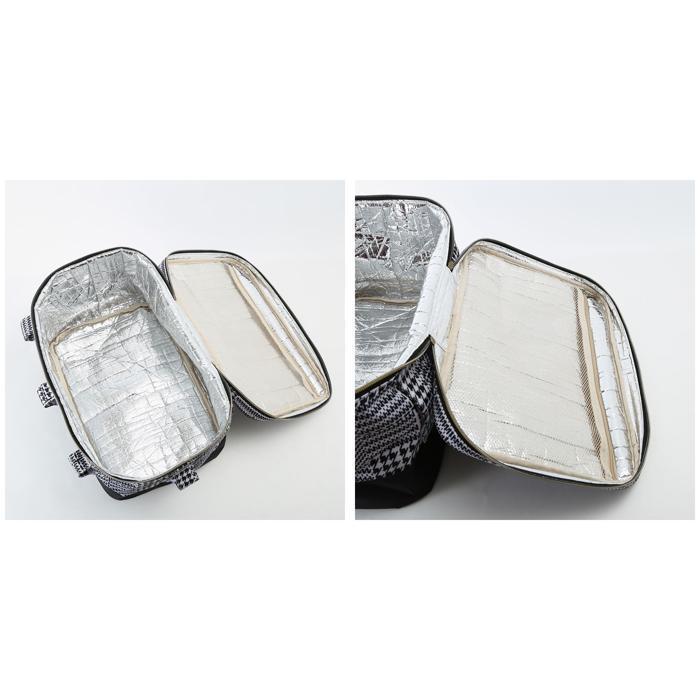 | 商品説明 | ・保冷・保温が可能な、バスケット型バッグが登場♪ ・たっぷり入るバスケット型だから、レジャーで大活躍。生地は撥水加工済み。 ・弾力性のあるグリップが付いたアルミ製のハンドルは、荷物が重たくなっても持ち運びがラクラク。 ・バッグ内側はアルミ蒸着仕様になっているので、内部の冷気や暖気を逃がしにくい。 ・フタ裏には保冷剤を入れられる大きなメッシュポケット付き。 ・バッグ底面は足付きだから、床や地面に置いても汚れにくく安心。 ・軽い材質を使用しており使わない時はたたんで収納できるのも嬉しい。ハンドル部分も簡単に取り外しが可能。 |