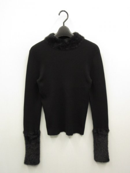 袖やネック部分のファーがアクセントになっている長袖ニット