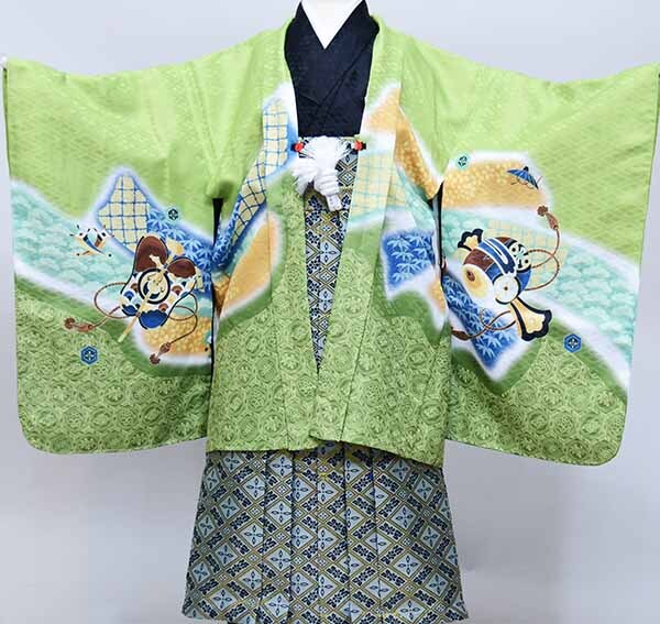 | 項目 | 五歳羽織袴フルセット ・羽織 ・着物 ・長襦袢 ・袴 ・草履 ・角帯 ・扇子 ・短剣 ・羽織紐 ・お守り |