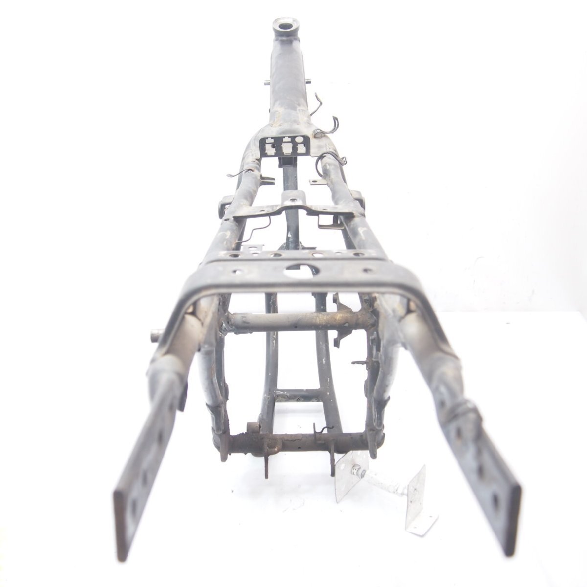 | GB250 87年モデルから取り外しにて入庫した純正フレームです。 フレーム番号 MC10-1100XXX 登録可能な書類付。 現状にて入庫の為、詳細は曲がりは判断が出来ません。 目視による確認で、ネックが左右に振ったりオジギした印象はなし。 ストッパーの打ちも画像の程度。 割れ無し、パイプ潰れ無し。 現状にてエンジンは載りそうです。 必要に応じて手を加えながら組み上げる事が出来る方なら使えるフレームです。 組み替え用や、車両作成にご活用下さい。 ※当方の都合上、書類の発送は商品とは別途になります。 発送日は毎週水曜日(商品落札が月曜火曜の場合は、次週水曜)を予定しております。 |