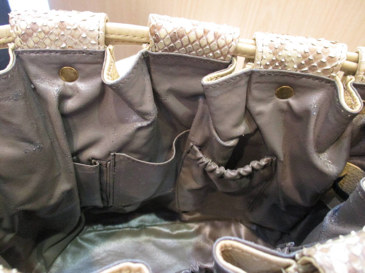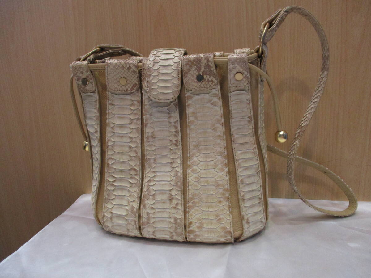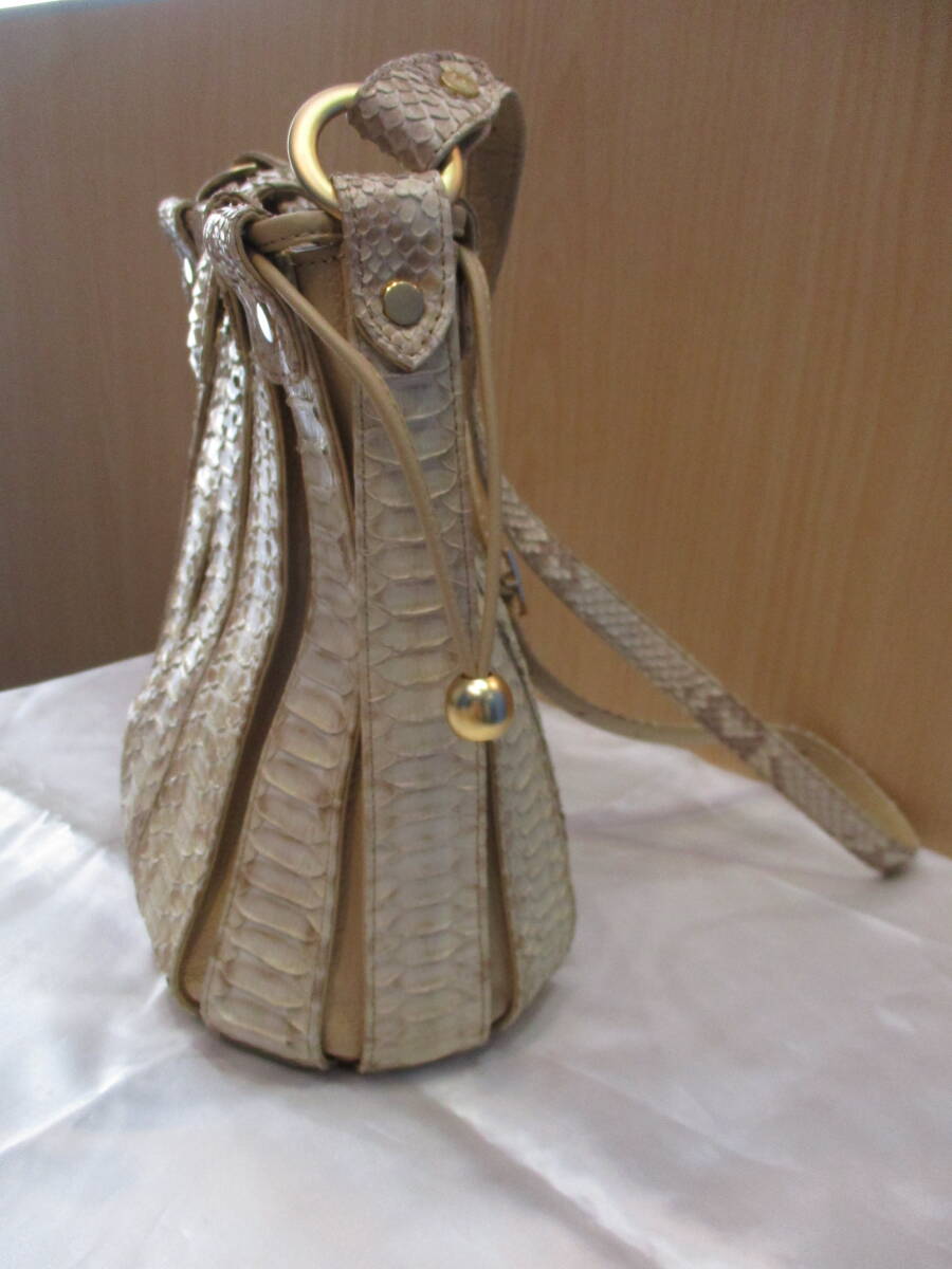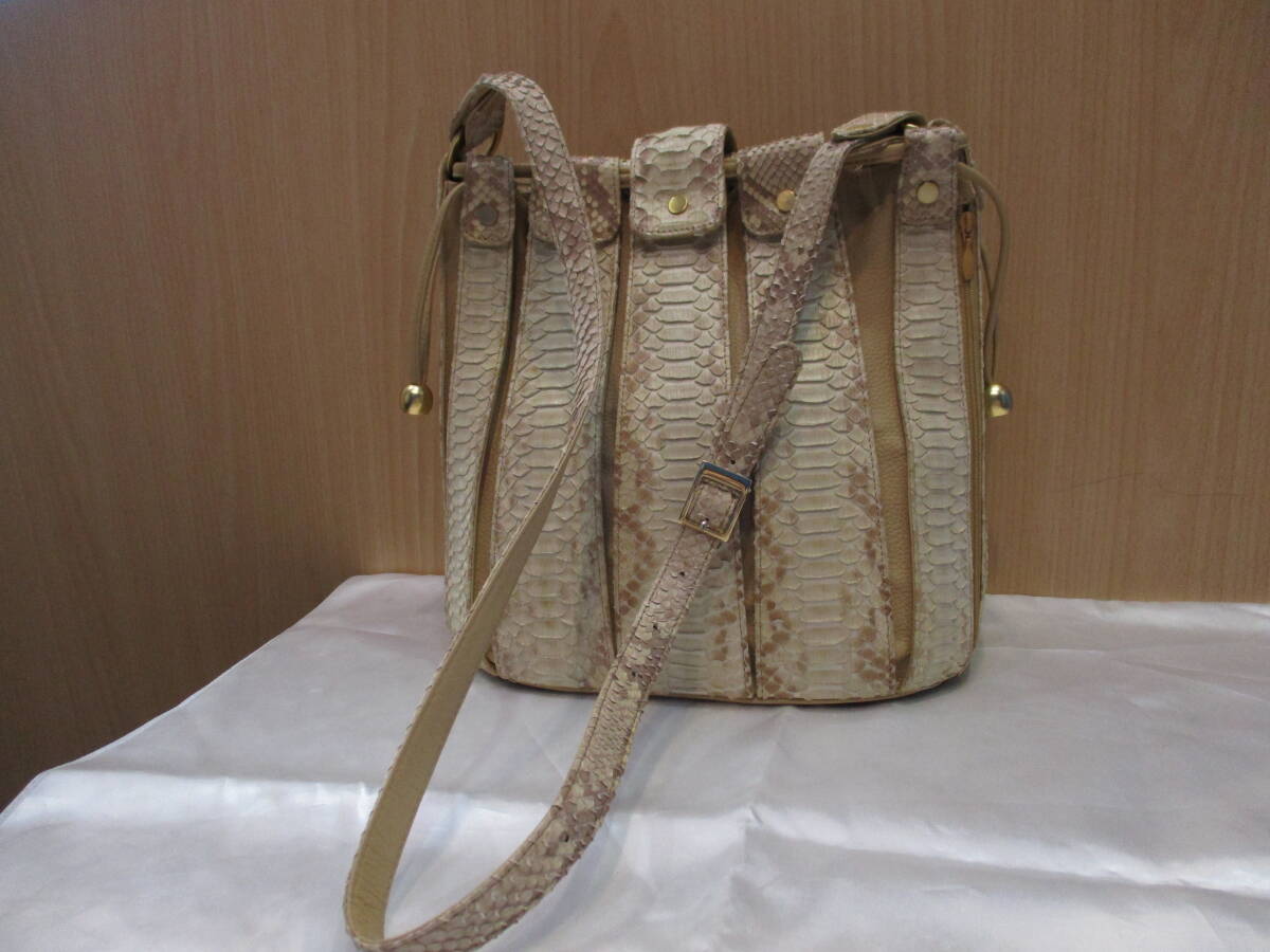 バッグ ショルダーバッグ ショルダー SANZE パイソン ベージュ系 巾着型 ヴィンテージ USED品 箱無し |