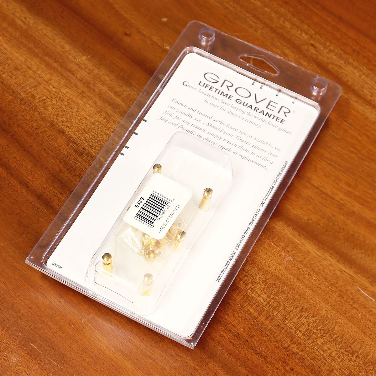 グローバーより、ヴィンテージ・スタイルのクラシックなルックスでありながら、ロック式を採用した「533シリーズ」がラインナップに加わりました。 533シリーズはギア比は15:1、キーストーン・ボタンで3:3仕様です。 カラーは、ゴールドです。 SPEC ■Type: 3:3 (6個セット) ■Finishes: Gold ■Hole Size: 約9.0mm ※ブッシュ穴の径 ■ギア比: 15 : 1 |