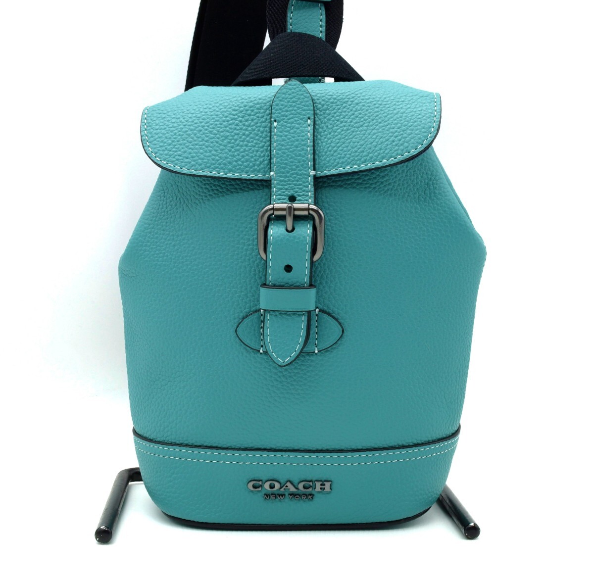 爽やかなターコイズブルーが印象的で、上質なレザー素材が使用されています。