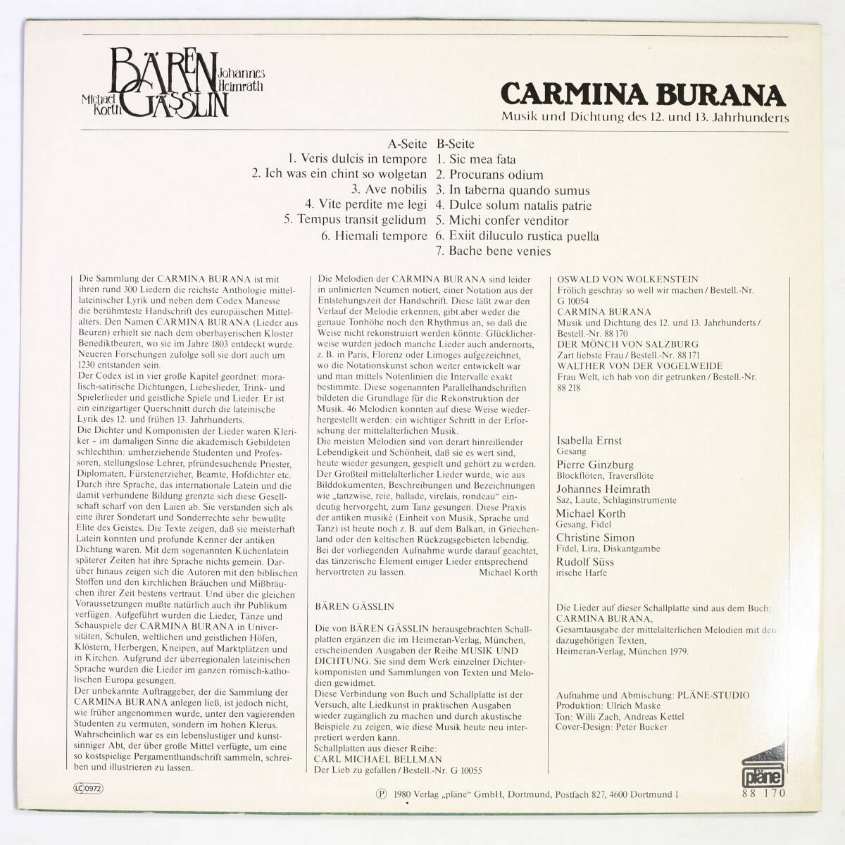 Bren Gsslin/Carmina Burana - Musik Und Dichtung Des 12. Und 13. Jahrhunderts 並良品 ドイツ盤 歌詞カード付 1980年作