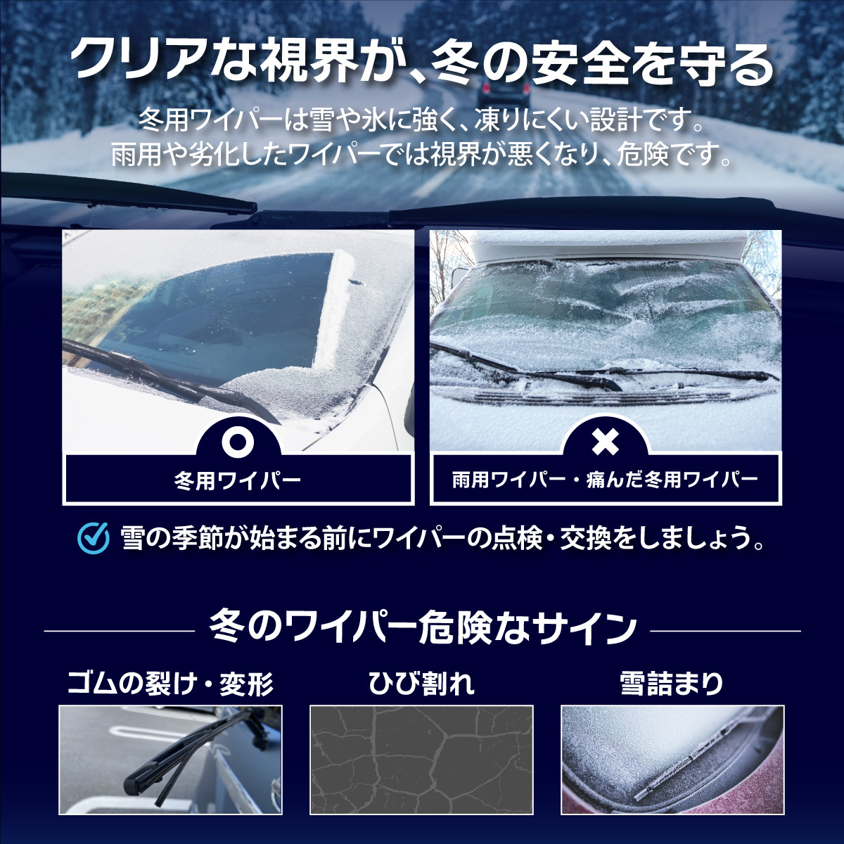 純正OEM供給メーカーと共同で試行錯誤を重ね、最高の擦拭性能を実現 クリアな視界を提供します