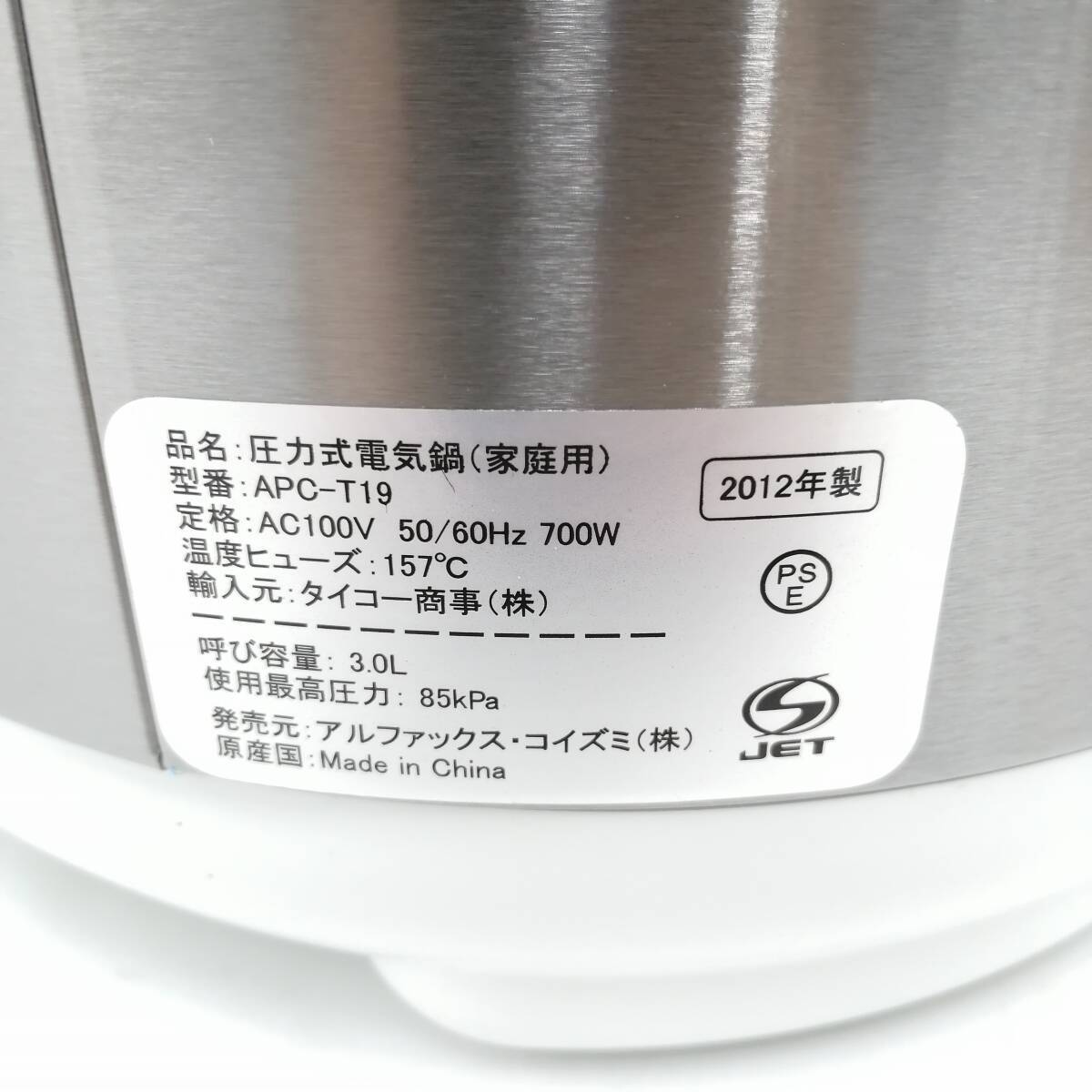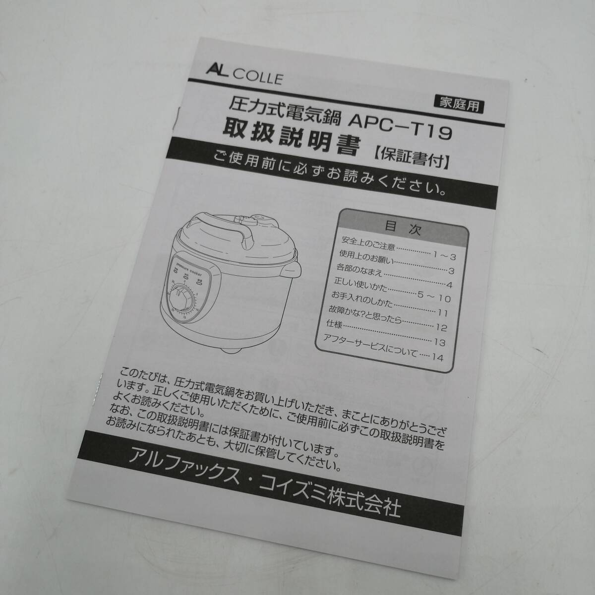 H1467 未使用 圧力式 電気鍋 AL COLLE アルコレ APC-T19/W 電気圧力鍋 圧力式電気鍋 圧力鍋 プレッシャークッカー 調理器具 | |||