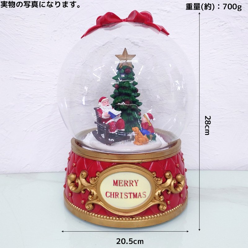 ![]() サンタクロースと子どもたちが大きなツリーの下で過ごす、夢のようなシーンを閉じ込めたクラシックスタイルのスノードーム。 ドーム内では粉雪がふんわりと舞い、カラフルに光るツリーが幻想的に輝きます。 台座には「MERRY CHRISTMAS」のエンブレムがあしらわれ、赤とゴールドの装飾が上品で華やか。 スイッチを入れるとLEDライトが優しく灯り、まるでサンタの魔法がかかったような温もりを感じられます。 玄関やリビング、ツリーのそばに飾るだけで、お部屋が一気にクリスマスムードに包まれます。 大切な方への贈り物にもぴったりな、心ときめくインテリアライトです。 給電方法は2つ、付属のUSBコードで使用する他、 単三電池3本でコードレスとしての使用も可能! 精巧に作られている為、ライトを点灯させずに 単体でオブジェとして使用しても存在感抜群です! ギフトなどにもおすすめです! ●動作パターン● ・未点灯 ・LED点灯(音楽なし)&スノーフレーク機能 ・LED点灯(音楽あり)&スノーフレーク機能 ※乾電池、USB出力用のアダプターは付属しておりません。 点灯時の様子は動画でご覧くださいませ。 動画はこちら ↓↓↓↓↓↓↓↓↓↓↓↓↓ こちらをクリック! 【商品詳細】 サイズ(約): 高さ19cm×幅29cm×奥行き10cm コード長さ(約):98cm 重量(約):1.8kg 素材:プラスチック 【給電方法】 単三電池×3/USBコード |