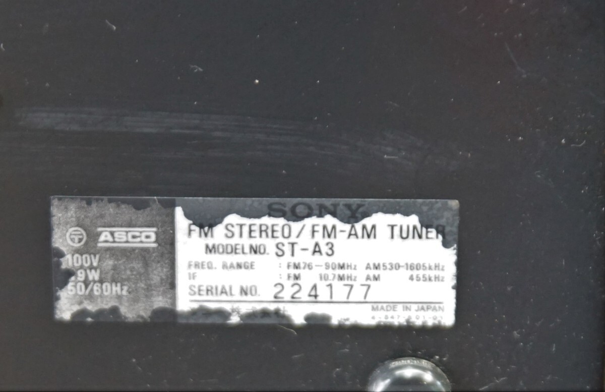 A&P●SONY:ST-A3 FM/AM TUNER 動作OK USED|