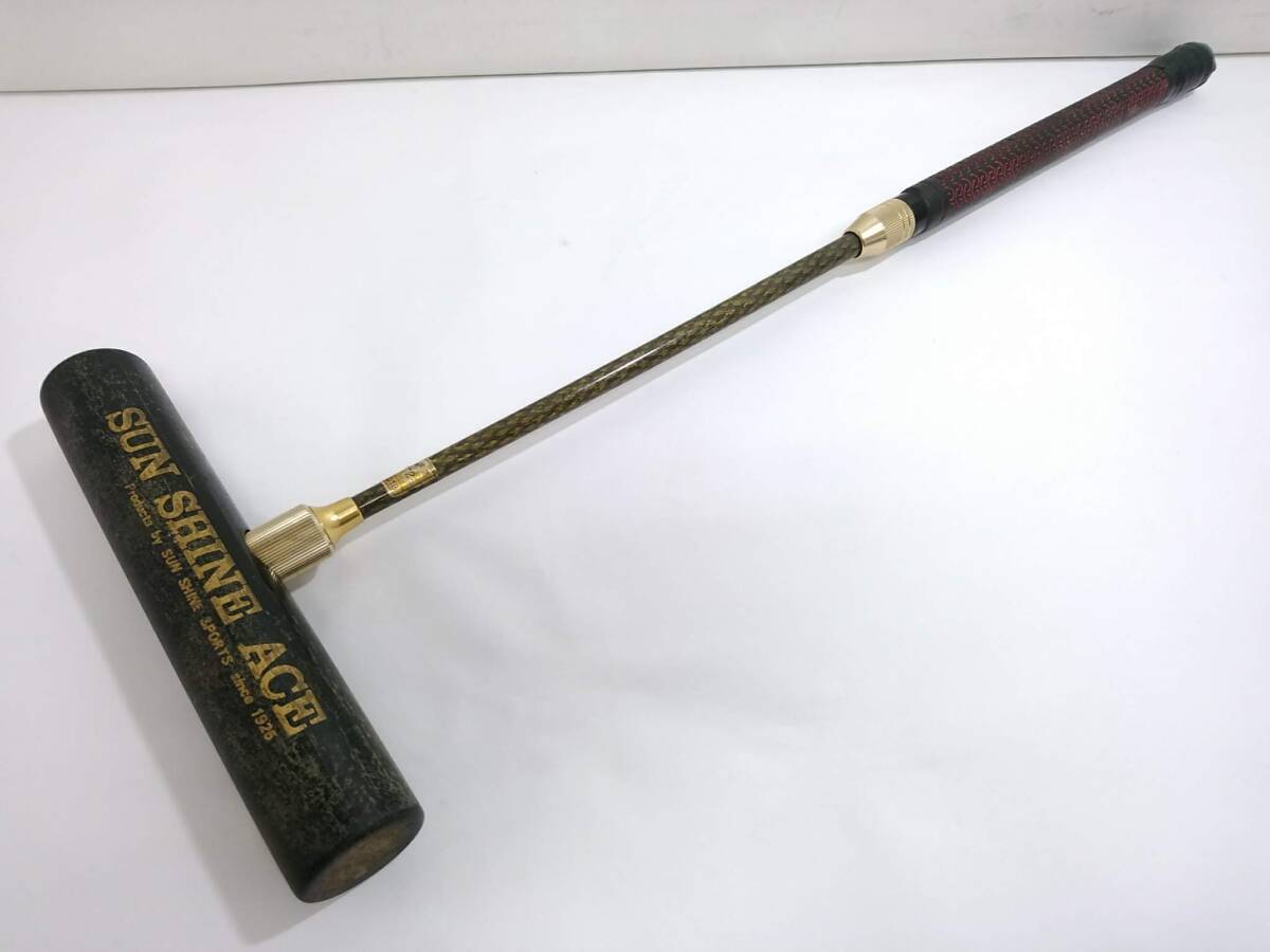 ※佐川急便の場合、離島など別途中継手数料がかかる地域が御座います。 その場合はお振込みを追加でお願いする場合が御座います事、 事前にご了承の程、宜しくお願い致します。 [商品名] 1円スタート SUN SHINE ACE サンシャインエース ゲートボールスティック [サイズ] 長さ約69cm, ヘッド長さ約23.5cm, フェイス直径約4cm [素材] 木×樹脂他 [カラー] ブラック系 [状態] 全体にキズ、汚れ、スレ、ハガレが御座いますが、 その他は良いと思います。