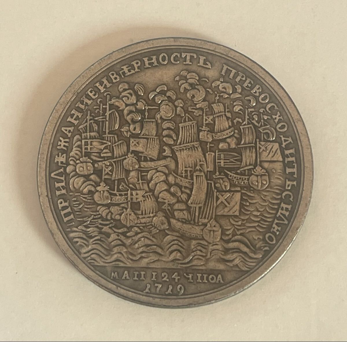 ロシア ピーター大帝 海戦記念メダル 1724年デザイン 大型メダル ロシア古銭 ピョートル1世 [浏览原始页面]