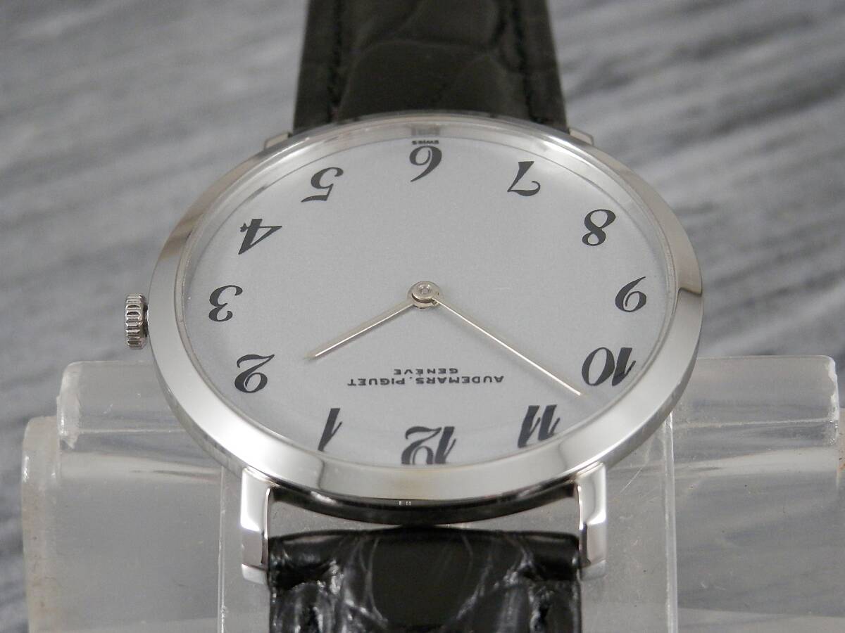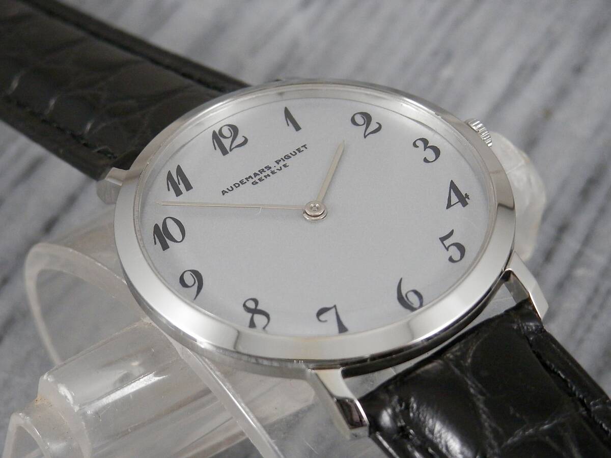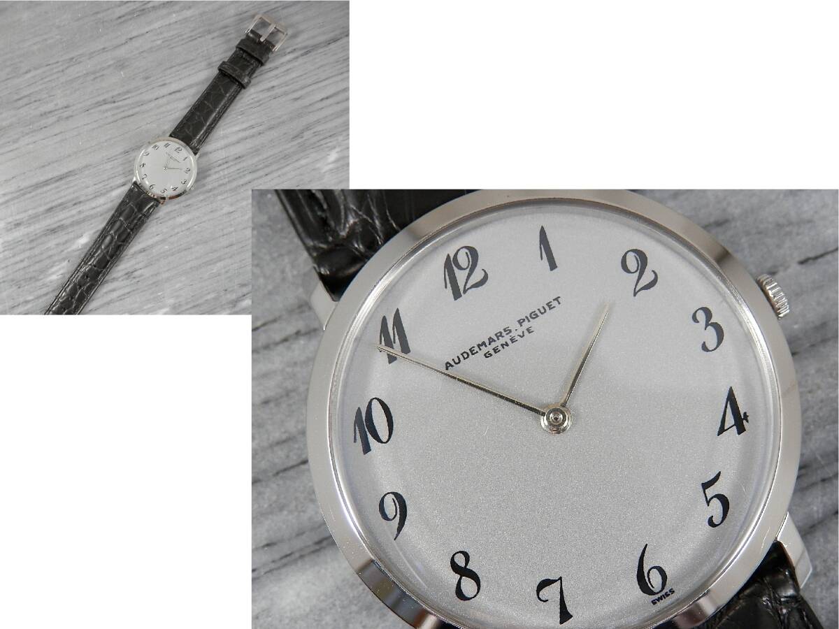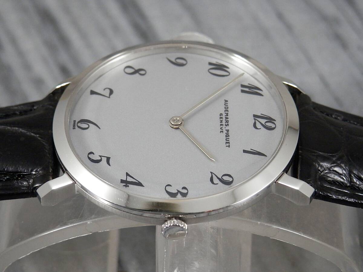 | 注!!ケース【ステンレス・新品仕上げ】・竜頭以外はAPオリジナル★OH済★オーデマ・ピゲ〓 cal.K2001/1A★クロノメーター★14KYG無垢文字盤☆新品無反射カーブサファイアクリスタル風防★ワニ革バンド◆つや消しシルバー文字盤(リダン) | |||
