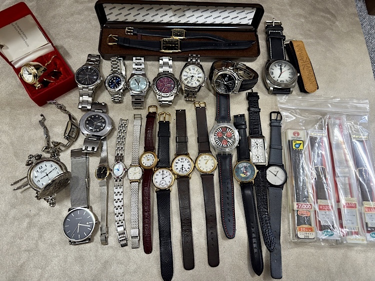 | ※ 商品説明及び注意事項をよくご確認の上、ご検討くださいませ。※ ■□商品内容□■ 時計まとめ★A.V.S(YOKOHAMA ADVAN RACING)・XC(クロスシー)・LUKIA(ルキア)・swatch★SEIKO/CITIZEN/CASIOなど 中古◆時計まとめD 【状態】 中古・ジャンク品です。 動作確認は行っておりません。 写真の通りの出品になります。 写真をご覧になった上でご判断いただける方のみご入札をお願いいたします。 ご覧いただく端末により実際の商品と色・質感等が若干異なる場合がございます。 素人検品、および自宅保管品のため 気になる方や完璧を求める方はご入札をお控えください。 【備考】 まとめて出品している商品に関して、個別で対応出来ない事がございます。 ご了承ください。 写真にあるものが全てになります。 ■□特記事項□■ ● 分かる範囲でご質問にはお答えしたいと存じますが、すぐに対応できないこともございますので予めご了承ください。 尚、専門家ではないため専門的な知識はございませんので、ご質問によっては返答できない場合がございます。 ご容赦ください。 写真にてお判りになる方に使っていただけましたら幸いです。 ○ 必ず写真をご確認いただき、ご入札のご検討をお願いいたします。 商品につきましては、写真が全てになります。 商品の状態を詳しくお伝えすることが出来ませんので、状態に神経質な方の入札はご遠慮ください。 画像をよくご覧になってご判断いただき、気に入っていただけましたらご入札ください。 ノークレーム・ノーリターンでお願いいたします。 ● 個人保管の物になりますので、専門店並みの綺麗な商品をお探しの方、また神経質な方は、ご遠慮くださいます様よろしくお願いいたします。 また写真が全てになりますので、掲載写真をご覧の上でご判断いただき、ご入札をよろしくお願いいたします。 〇 お取り置き不可 ※ 内容にご理解いただける方のみ、ご入札をお願いいたします。 ★品名末尾にある番号は当店の商品管理番号になります。 例 PENTAX レンズ◆5555 又は、PENTAX レンズ◆管No5555 など (末尾数字は自社商品管理番号で商品品番、サイズではありませんのでご注意ください。) ★ 注意事項 ・まとめて出品している商品に関して、一点づつのご質問にはお答え出来ませんので、ご了承ください。 ・当方は、部品・パーツ・出品商品の一部のみのお取り引きは一切承っておりません。 ・出品商品における瑕疵担保責任は負いませんので、ご納得の上ご入札をお願いいたします。 ・神経質な方のご入札はお断りしております。 ・ジャンク品と明記がなくても製品すべてにおいてはご落札者様ご自身のメンテナンス前提でご入札をお願いします。 ※ 専門家ではないため、商品の細かな部分の状態や欠陥を見落とす場合がございます。 ご心配がございましたら、ご入札前にご質問にてお聞きください。 ご落札、商品到着後のクレームは一切対応いたしかねます。 ・ご落札から原則 3日間経ってもご連絡が無い場合は、再出品のため削除させていただく場合がございます。 諸事情がある場合は、ご落札後、取引連絡にてお知らせください。 ・ご入金確認から発送まで、3~6日間のお日にちをいただく場合がございます。 ・記載されている発送方法以外でのお取り引きには応じかねます。 ・商品発送後の発送トラブルなどは、ご落札者様と運送会社側で行っていただくようよろしくお願いいたします。 当方は関与いたしませんのでご容赦ください。 ・ご入札後のキャンセルはお断りしております。 ・商品をご理解の上でのご入札をよろしくお願いいたします。 すり替え防止の為、ノークレーム、ノーリターンでよろしくお願いいたします。 ノークレーム&ノーリターンの意味をご理解いただける方のみ、ご入札をよろしくお願いいたします。 ※ 上記内容をご理解・ご納得された方のみご入札をよろしくお願いいたします。※ ★ 支払方法 ・かんたん決済 | |||
