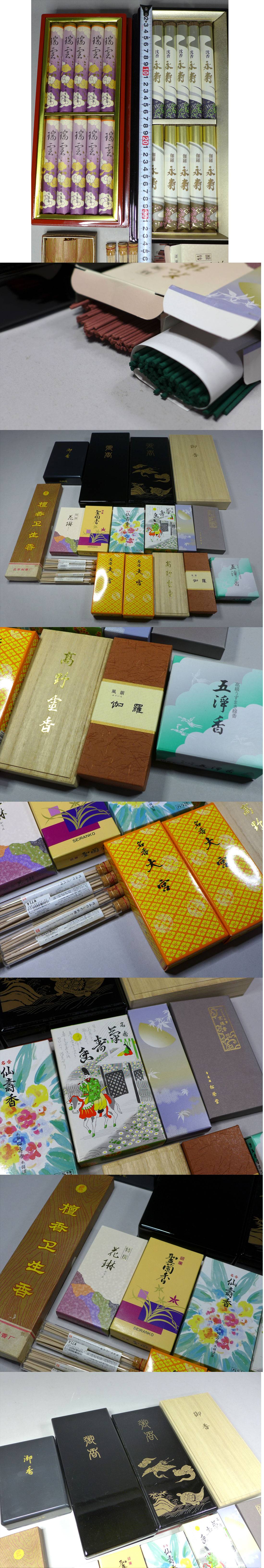 サイズ感は写真の中のスケールを参考にしてください。桐箱入などの高級線香です、まとめてどうぞ!未使用が多数です、箱には時代感が見える物もあります、ご了承ください。内容や状態などは画像参照でお願いします。ただ長期保管品ですので中身の状態や本数、グラム数を保証するものではありません、ご理解の上お願いします。xvpbvx |