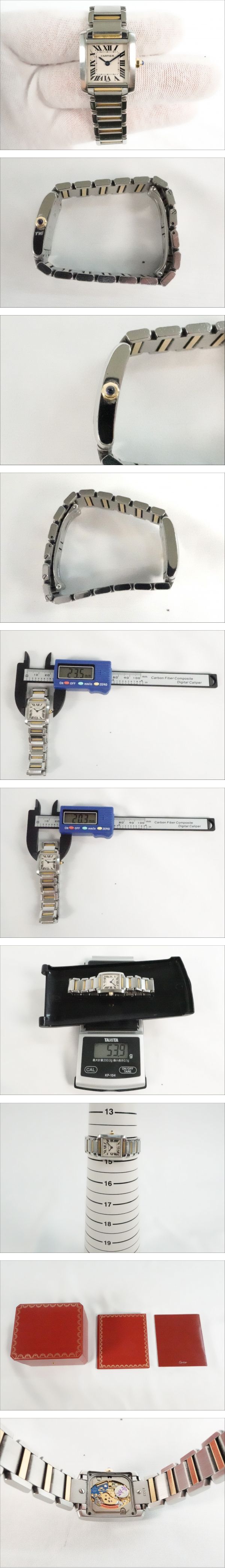 ブランド名:Cartier 商品名:腕時計 型番:2300 シリアル:CC533346 ベルト:純正 腕周り:画像にてご確認下さい。 総重量:画像にてご確認下さい。 サイズ:画像にてご確認下さい。 ムーブメント:クォーツ 付属品:箱、ケース、冊子 動作:稼働品です。電池残量は分かりかねます。 ご理解の上ご入札お願いいたします。 リューズを回して時間調整確認できました。 その他の操作は未確認となります。 長時間の動作確認は行っていないため、日差含め正常な動作かは分かりかねます。 ※あくまでも検品時の動作となりますので予めご了承下さい。 状態:譲り受けた商品の為、購入時期や使用頻度など詳細は分かりかねます。 箱劣化や粉拭きがございます。 中古品の為、フェイスや外観に傷やスレが見受けられます。 素人の為、ご質問いただいても回答できない場合がございますが、 画像を追加致しますので、欲しい写真があった場合ご質問頂ければと思います。 神経質な方のご入札はお控え下さい。目視での確認となります。 商品の状態に関しては画像にてご判断下さい。 ※オーバーホール歴は不明でございます。 ※裏蓋を外した画像がない商品は、裏蓋を外して内部の確認は出来ておりません。 ID:0000972025-11151-03 弊社はインボイス登録事業者です。 登録番号:T8370001039877 ※※入札前に必ずお読みください※※ 説明文をよくお読みの上ご入札下さい。 画像に写っているものが全てになります。 商品の重さを量っているものに関しては多少の誤差がありますので、ご理解下さい。 商品の状態に関してはご自身でご判断の上、ご入札下さい。 あくまでも主観に基づく感想です。状態判断は画像にてお願い致します。 商品に対しどちらの情報が欲しいか分かりかねる部分もございますので、落札前にご質問頂ければと思います。 中古品の為、神経質な方のご入札はお控え下さい。 ご入札後の入札取り消しは出来かねます。 専門知識がなく、ご質問いただいても回答できない場合がありますが 気になる点がある方は入札前にご質問下さい。 素人による検品の為、見落としている場合もございます。 ご了承下さい。 ノークレーム・ノーリターンでお願いします。 | |||