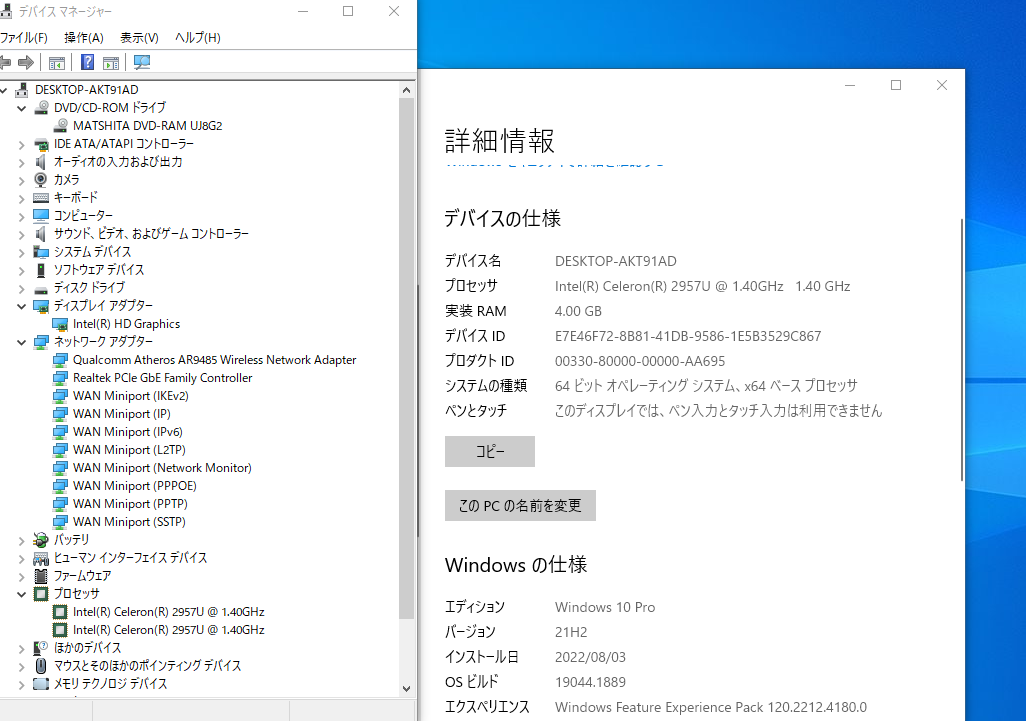 ビデオチップ | Intel HD Graphics |