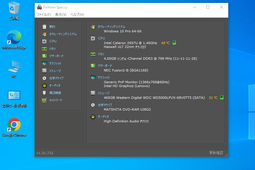 HDD | 500GB ソフトでチェック済--正常 |