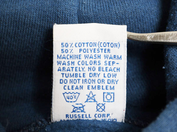 90年代のオールド RUSSELL ATHLETIC ラッセル のスウェットパーカーです。 素材は、50% COTTON : 50% POLYESTER 着心地抜群の裏起毛スウェット素材が使用されています。 希少な、MADE IN USA ( アメリカ製 ) ポケット左にロゴ刺繍入りのピスタブ付き コーディネートの良いアクセントになる、ブルーネイビーボディ クルーネックに比べ球数の少ないフードパーカー お探しの方も多い、希少な人気の無地 シンプルなデザインで ジャケットのインナーとしてはもちろん 1枚で様になる、着回しのきく商品です。 男女兼用で着用可能です 実寸をご確認ください |