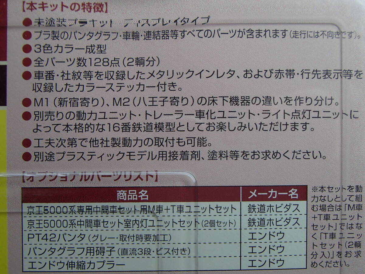 | ★鉄道ホビダス (HOゲージ) 京王5000系 中間車2輌セット (ディスプレイモデル未塗装組立キット) |