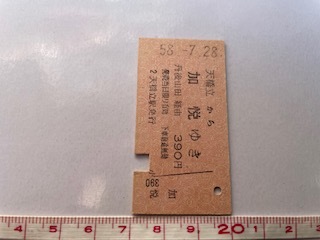 | ◎天橋立駅発行 天橋立から加悦ゆき 丹後山田経由 390円 硬券乗車券 店番-硬券53 | |