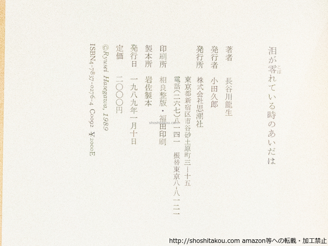 泪が零れている時のあいだは 初カバ帯 署名入 / 長谷川龍生 ◯当店在庫から「長谷川龍生」の本を探す| ★ 発送方法 (送料無料) ・日本郵便のゆうパケット・レターパックライト・レターパックプラス・ゆうパックの中から荷姿の大きさに適した方法で発送します。(発送方法や到着日時はご指定いただけません。) ・上記発送方法はすべて追跡番号付き・土日配送有・速達扱いです。ゆうメールや定形外は発送に使用いたしません。 ・ゆうパケット・レターパックライトは郵便受けにお届け、レターパックプラス・ゆうパックは配達員対面受取です。防水梱包します。 ★ 必ずお読みください ・代金決済後の次の火木土に発送します。 ・ストア出品です。ご注文時に必要事項のご記入・決済いただいた後は、やり取り不要です。商品の到着をお待ち下さい。 ・肉筆物・美術作品は真作保証いたします。 ・商品のレファレンス(調べ物)サービスは行っておりません。また当店商品以外の無料鑑定は行っておりません。 |