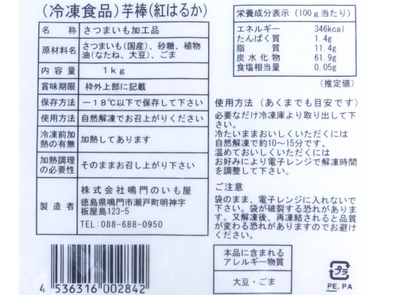 糖度が高い紅はるかを使用し、メーカー特製の餡を