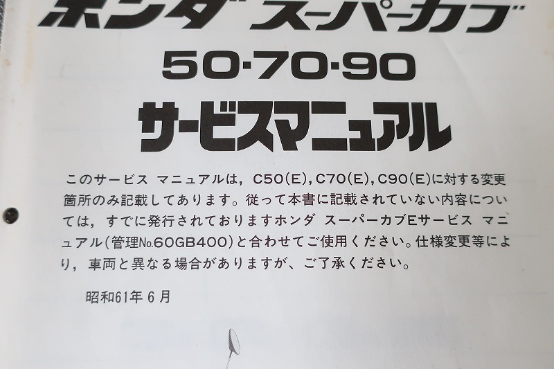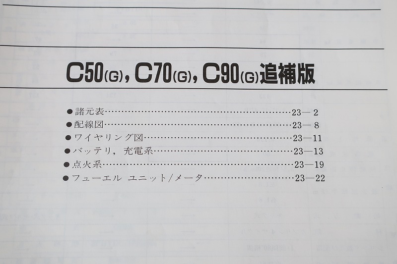 | 即決!スーパーカブ50/70/90/サービスマニュアル補足版/C50/C70/C90(G)/HA02/配線図有!(検索:カスタム/メンテナンス/整備書/修理書)203 | |