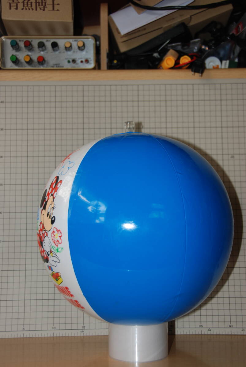 ミッキーマウスのビーチボール、USEDです。 鈴入り、サイズは40cmです。 フットポンプで膨らませて24時間以上放置しましたが、空気漏れは認められませんでした。 目立つ汚れはありませんが、細かな汚れと画像5のようにプリントの転写が生じている部分があります。 |