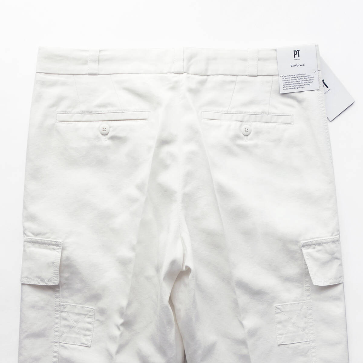 カーゴパンツやベイカーパンツに代表されるように、このところ“ミリタリーアイテム”がじわじわきています。今季も多くのブランドからミリタリーアイテムがリリースされているので購入リストに入れている方も多いのではないでしょうか。そんな流れをいち早く取り入れたPTの人気定番シリーズが「ReWorked(リワークド)」です。その名のとおり、同シリーズではヴィンテージのワーク&ミリタリーパンツを再構築(リワークド)したモデルを提案しています。こてこてのワーク&ミリタリーパンツを復刻させたいわゆるレプリカではなく、厳選されたイタリアンファブリックを用い、そこにデザイン性を加えることにより、大人らしさをキープしながら現代的にアップデートしているところにPTらしさが光ります。上質な生地と計算されたシルエットに裏打ちされた、大人が安心して穿けるワーク&ミリタリーパンツ、それがReWorkedシリーズです。
