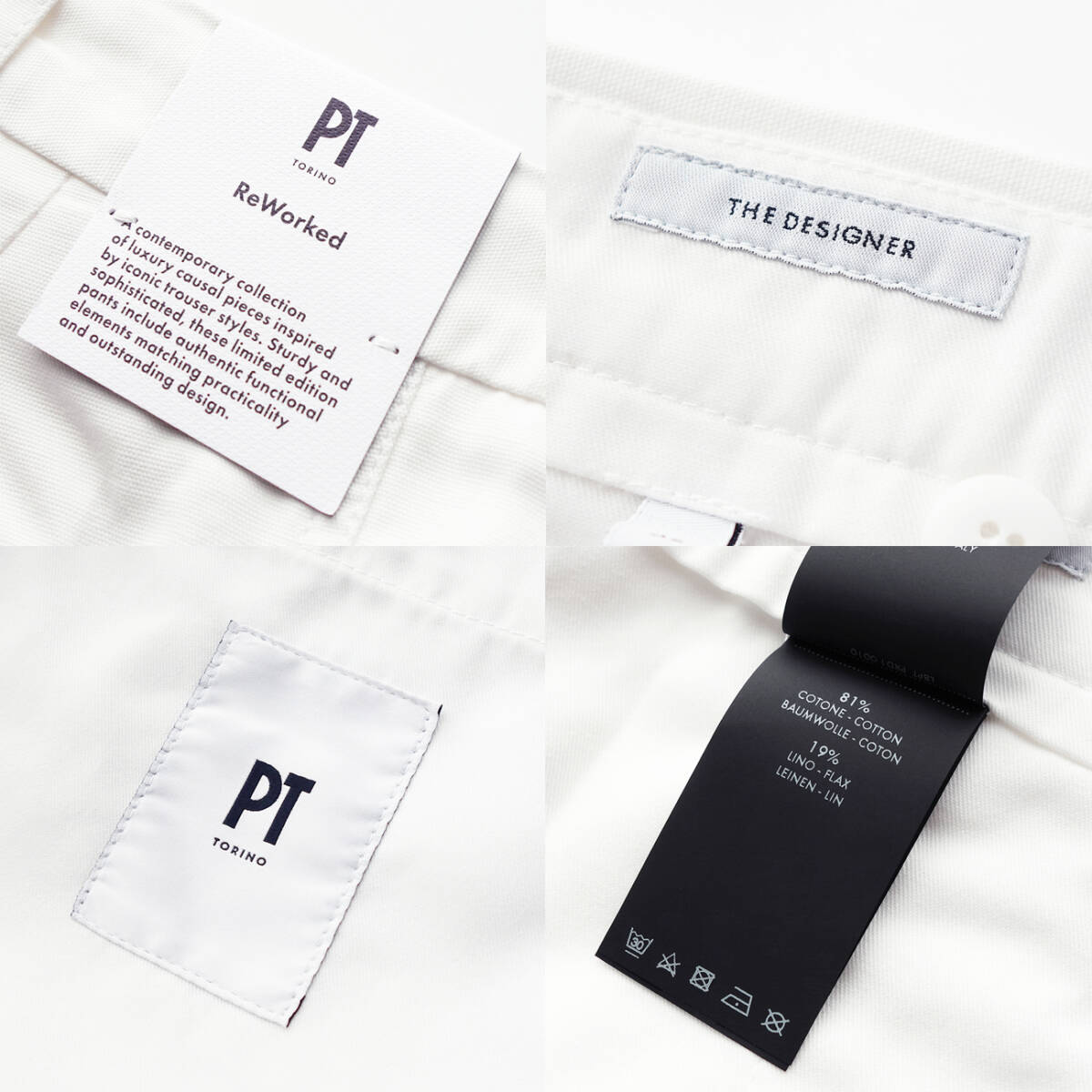 イタリアきってのパンツ専業ブランド、PT TORINO(ピーティートリノ)。以前はPT01(ピーティーゼロウーノ)というブランド名でしたが、創業地であるトリノへのトリビュートとともに“究極のパンツを創る”という強い意志を込めてこの名に変更されました。50年以上にわたって培ってきた生地への深い造詣を活かしつつ、メンズクロージングにおいてもっとも重要なアイテムはパンツというコンセプトのもと専業ブランドとしての技術とノウハウを注ぎ込んでいます。PTのパンツにはそれぞれのモデルごとにテーマが設けられており、独自のデザインでその世界観を表現するというパンツの可能性を広げる多様性に加え、そこには美しいヒップラインとともに美脚効果を備えた完璧なシルエットが貫かれています。