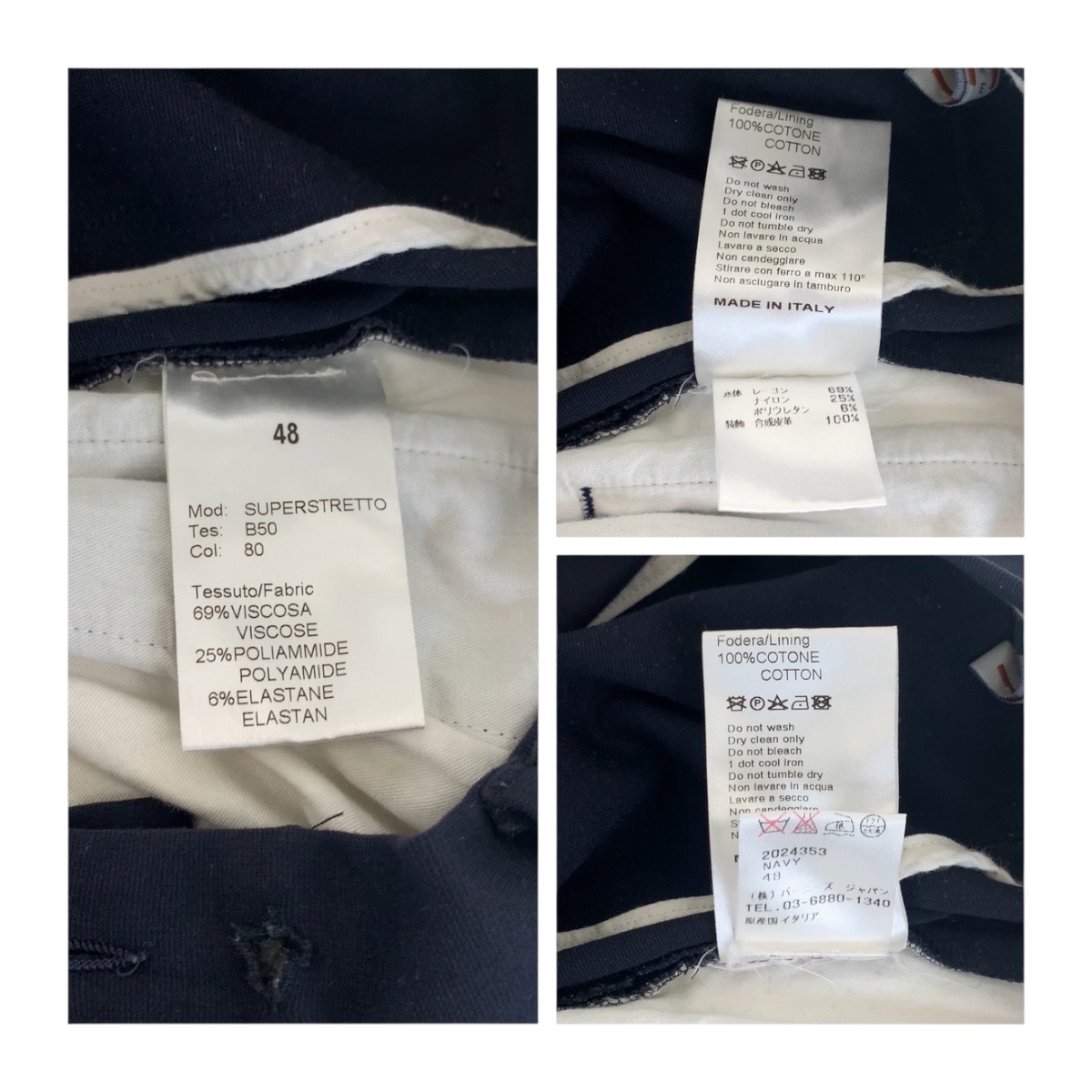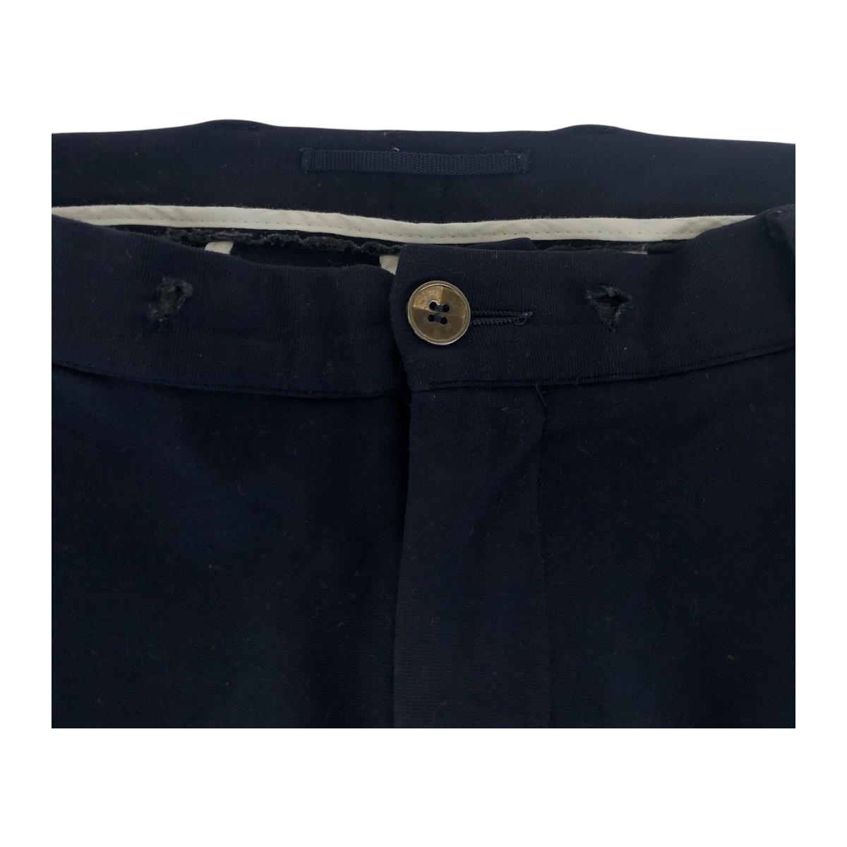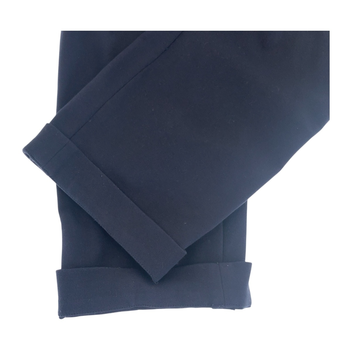 | サイズ | 表記サイズ:48 総丈:約90.5cm ウエスト:約平置き43cm 股上:約25cm 股下:約66cm ワタリ幅:約31cm 裾幅:約17cm |