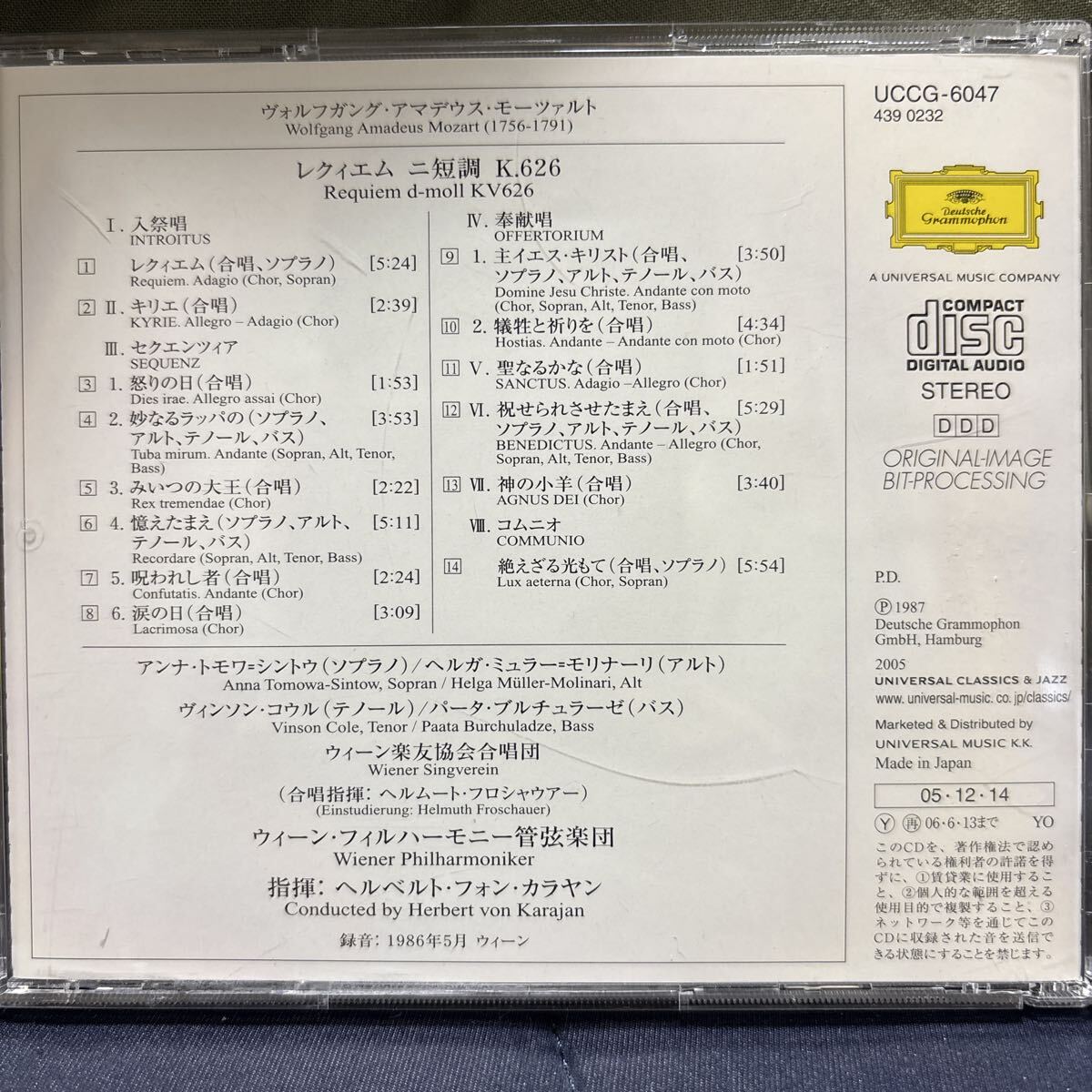 ヘルベルト・フォン・カラヤン指揮ウィーン・フィルハーモニー管弦楽団の演奏によるモーツァルトのレクィエム。カラヤン晩年の1986年3度目の録音。ウィーン・フィルの美しい音色を活かした荘厳な演奏。ベーム盤と聴き比べてみて下さい。送料無料です。