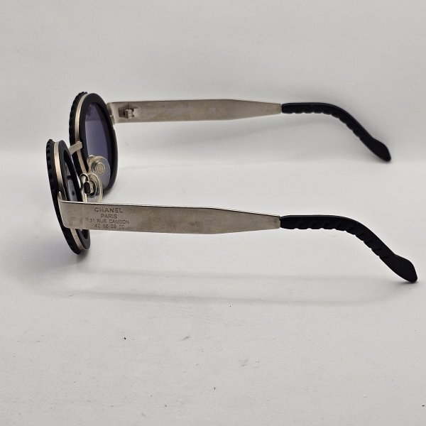 入手困難なシャネルの「31 RUE CAMBON」モデル、カメラレンズのような独特なデザインが目を引くラウンドサングラスです。