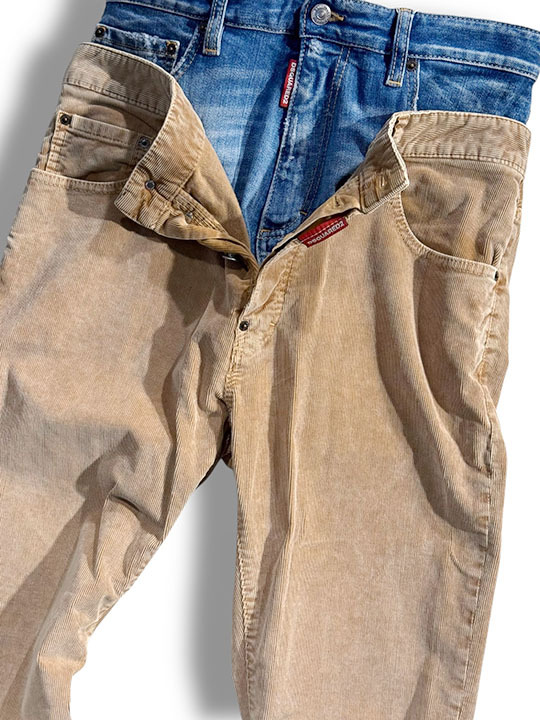 主役級の存在感を放つ唯一無二の「ダブルウエスト」デザイン!遊び心たっぷりでエッジの効いた ≪ レイヤードウエストのコーデュロイパンツ / 642 Twin pack Jean ≫ | ||
