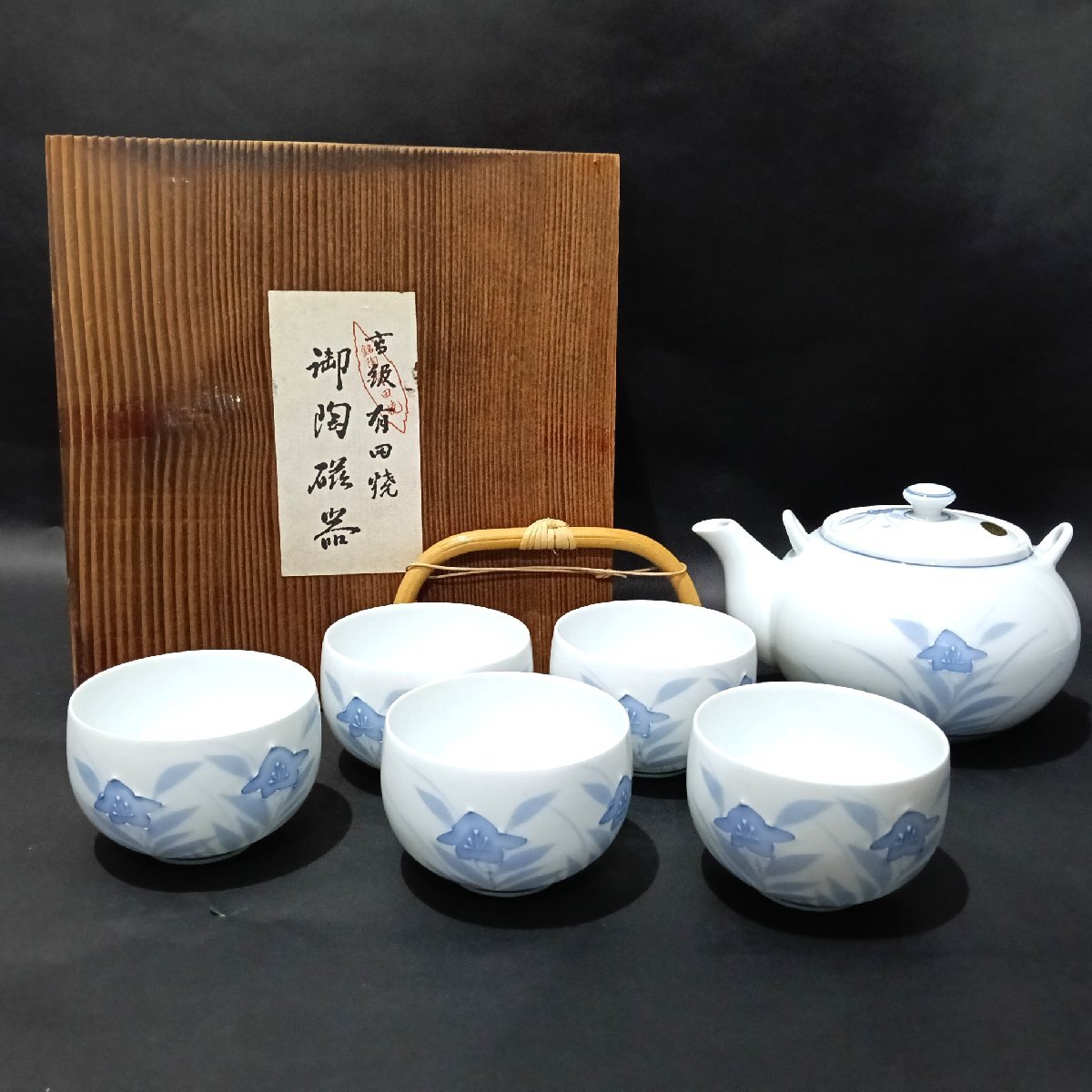 | 【未使用】有田焼 茶器セット 急須 湯呑み 5客 No.5780 茶道具 陶器 蓋付き 一珍だみ桔梗 食器 和食器 |