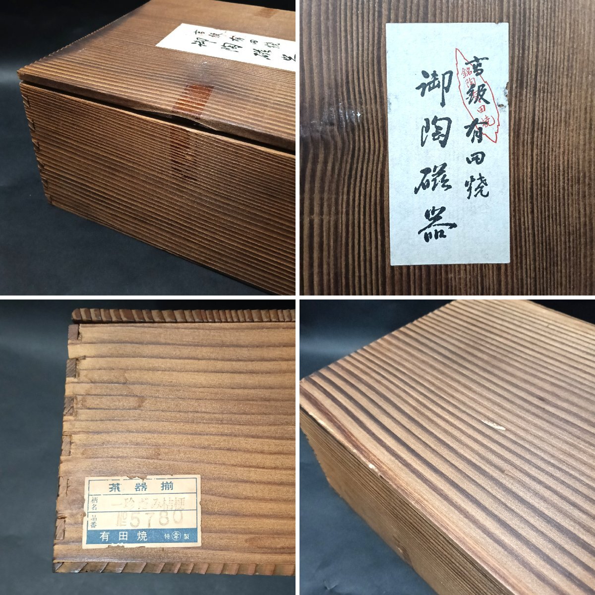 商品説明 有田焼の急須と湯呑み5客の茶器セットです。 透き通るような白い磁肌と、藍色の顔料で描かれた染付けが特徴です。 来客やおもてなしにいかがでしょうか。 詳細 ●サイズ:(急須)高さ11cm、横16cm、口径6.5cm (湯呑)高さ5.5cm、口径7.5cm(取手)高さ8.5cm ●ランク:Bランク ●コンディション:未使用ですが、湯呑みの飲み口が欠けている物が1点あります。 箱に傷や汚れ、テープの跡があります。 |