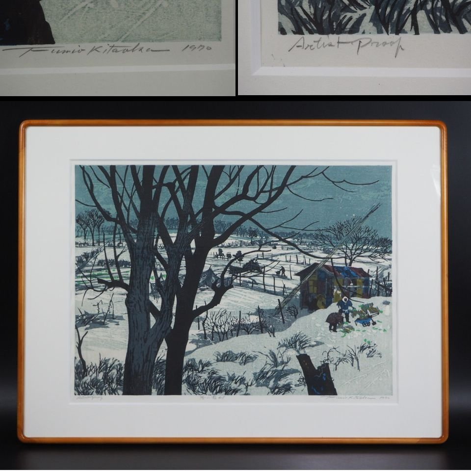| 商品説明 | 額寸約 64×56cm 画寸約 44×40cm ご覧のように、北岡文雄作木版画『冬の農村』です。額に微小あたりがありますが、状態とても良好です、詳しくは写真でご確認ください。 |
