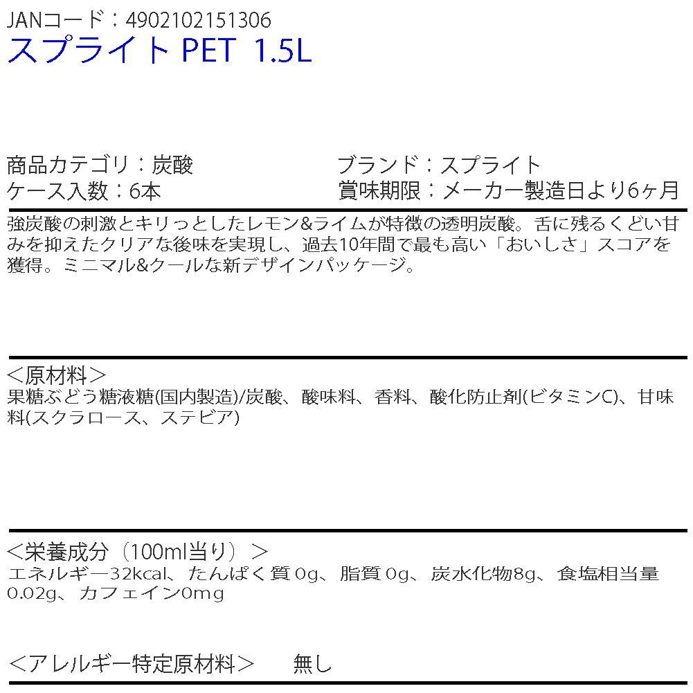 | 商品名 | スプライト PET 1.5L | |