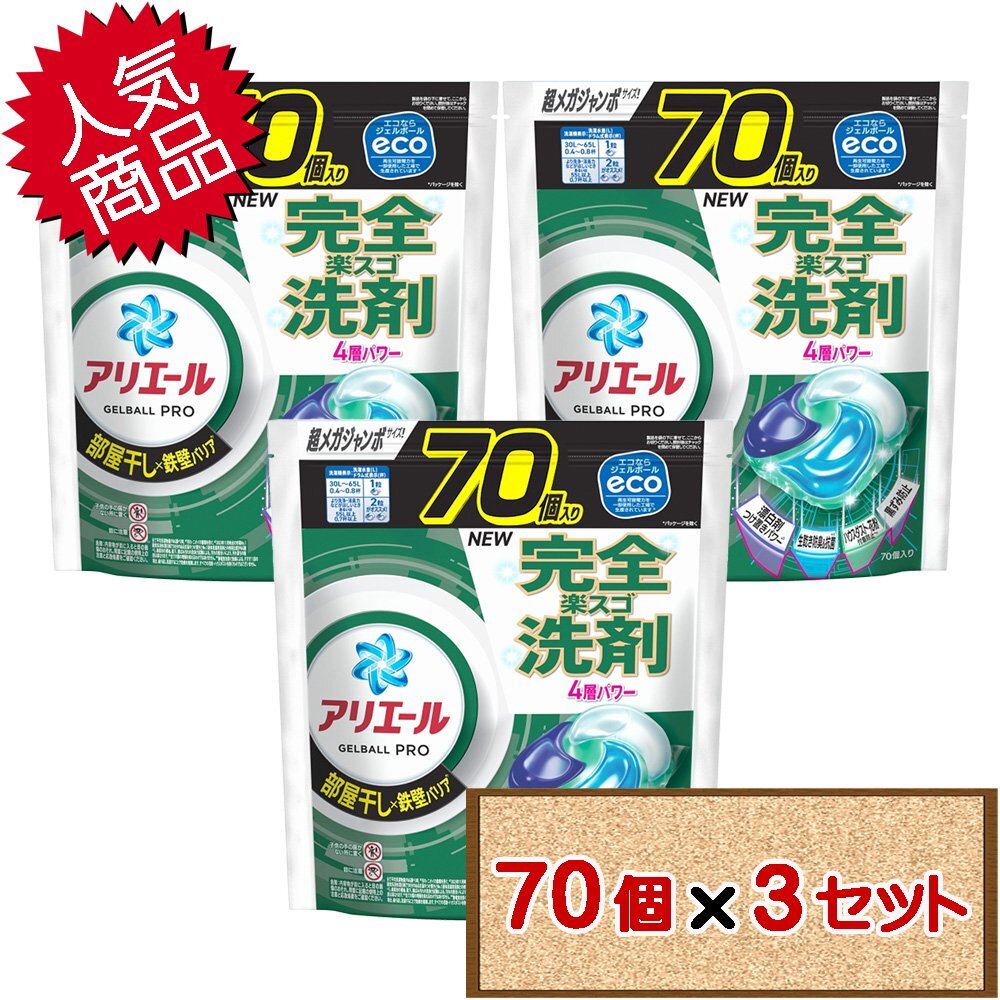 | 商品名 | コストコ P&G アリエール ジェルボール プロ 部屋干し × 鉄壁バリア 70個入り×3セット |