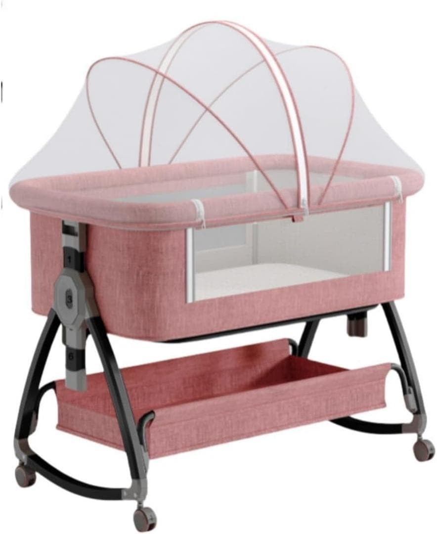 ベビーベッド 添い寝ベッド 折りたたみ ゆりかご ベビーラック 高さ6段調節可能 睡吐防止 抗菌メッシュ多機能 揺りかご 蚊帳・マット・おむつ交換台・収納かご キャスタ付き 組み立て簡単 収納便利 通気性 洗濯可能 消音昇降機能 0ヶ月 ~ 36ヶ月 新生児 乳児用 赤ちゃん 寝具 出産祝い (高さ6段階グレーピンク)11/14③ $$10580