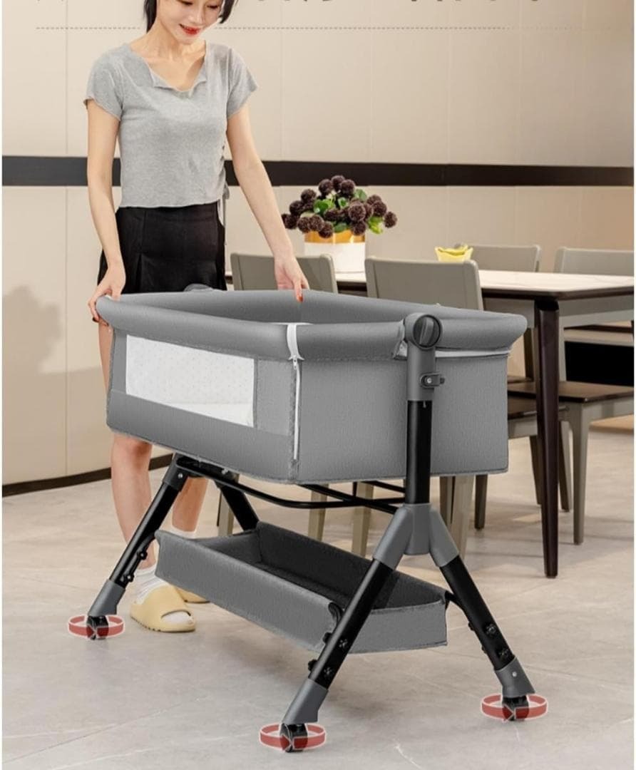 【安全ガードレール】ベビーベッドの周囲には安全ガードが付いており 赤ちゃんが寝転んだり倒したりするのを防ぎ 赤ちゃんの安全を守り 親がより安心できるようにします