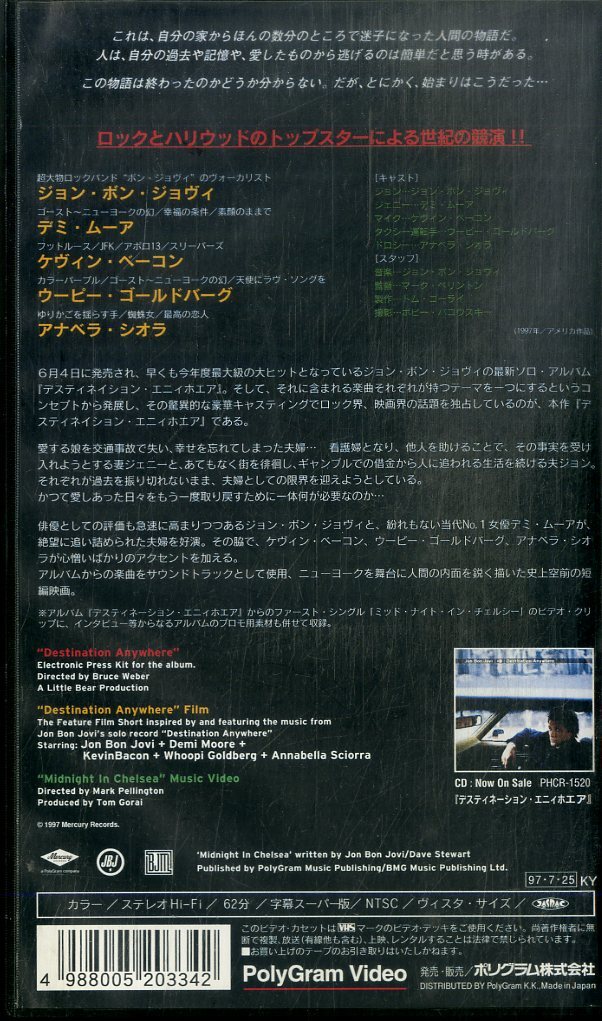 H00021519/VHSビデオ/ジョン・ボン・ジョヴィ「デスティネイション・エニィホエア」 [浏览原始页面]