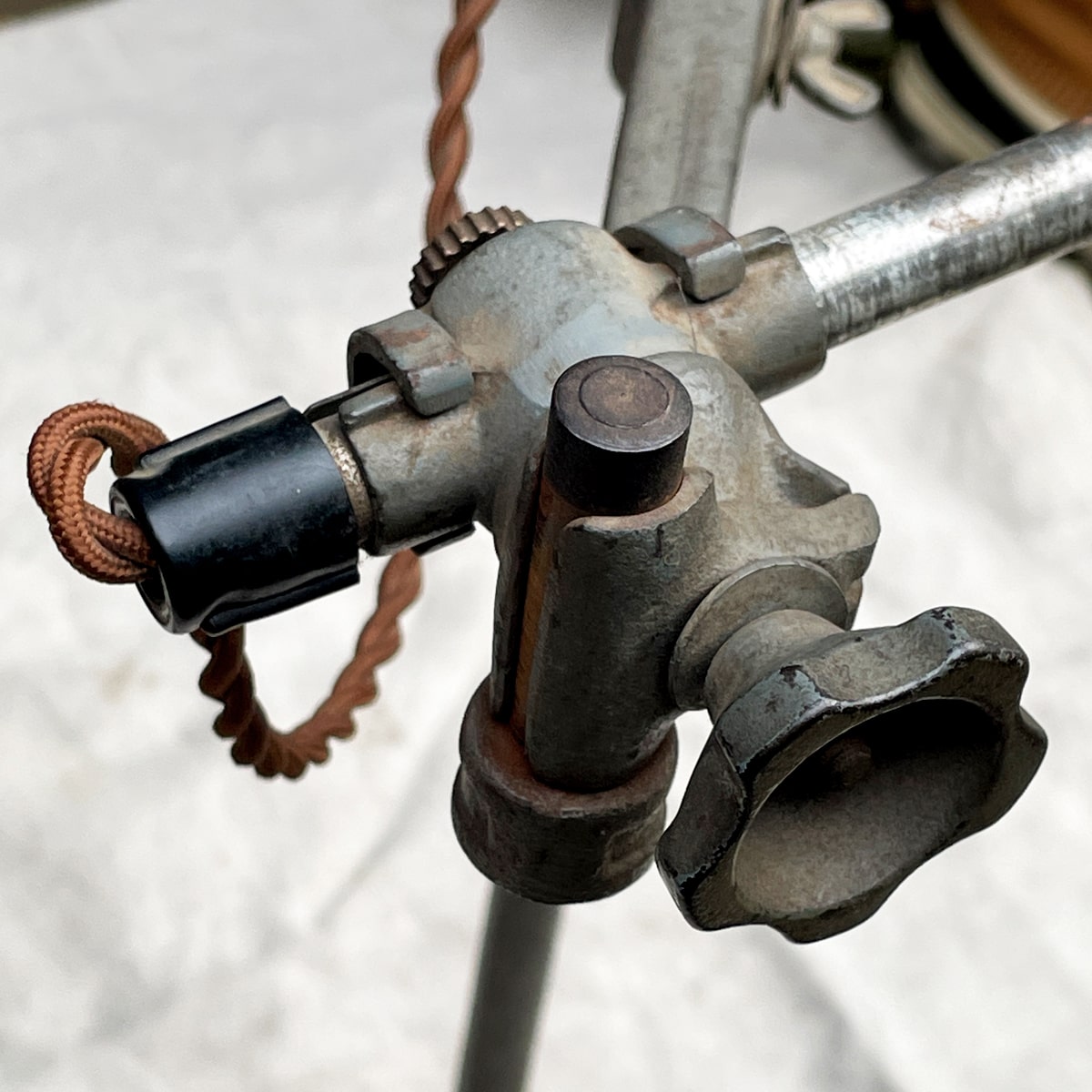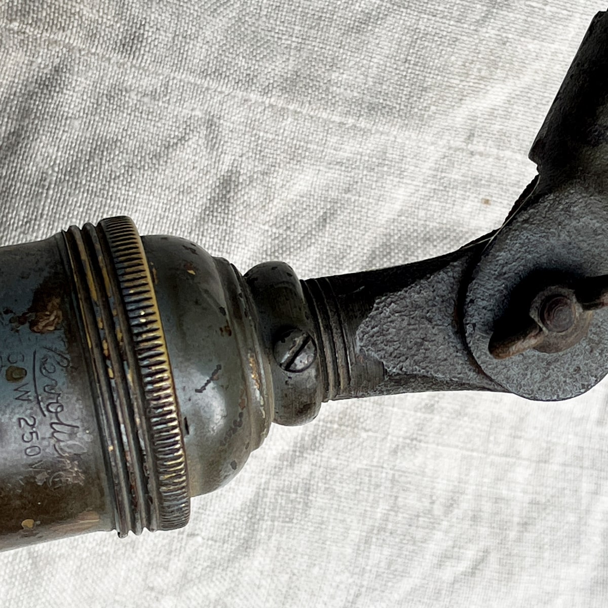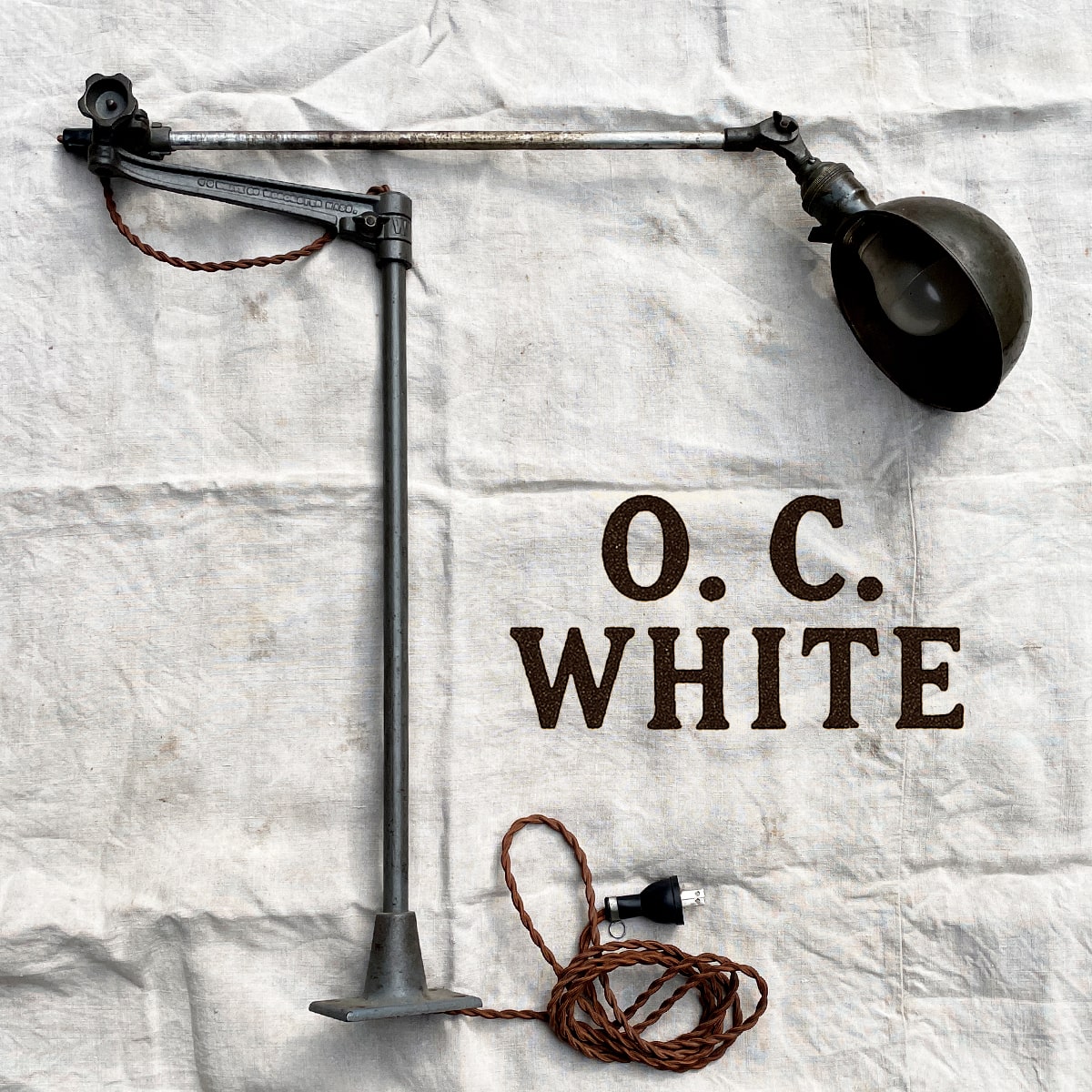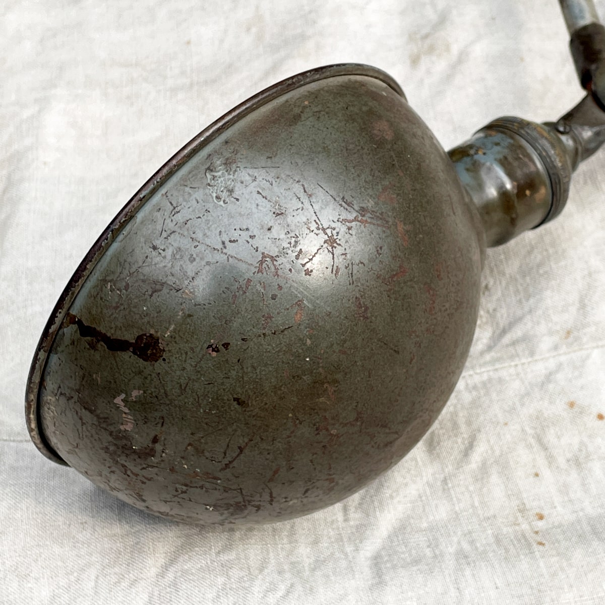 ※ 新規の方、評価内容に不安を感じる方の入札は削除する場合がございます。 ※ 取引につきましては商品の配達完了後 24時間 以内に「受取連絡」を行える方に限ります。 言わずと知れた アメリカンアンティークランプ 「O.C. WHITE」 の照明です。 「ARCADIA」で購入。現在は同モデルで150,000円を超える程に価格が高騰しました。 ブルーグレーと金属の色が混ざり合った極上のカラーです。 シェードはボバ・フェット感がたまらないです。 塗装も一切違和感なく、個人的にはオリジナルの可能性が高いと判断しています。 パーツの破損や不足も一切無さそうですので、今となっては貴重な歴史的ピースと思います。 私はテーブルに固定して、ワークランプとして使用していました。 長さや高さが自在ですのでテーブルの大小にかかわらず"様"になります。 簡易清掃につき、多少埃を被っていますが、塗装を傷めたくないのでこのままでお送りしますことをご了承下さい。 手狭になってきましたので、これを機にお譲りしたいと思っていますが、 しばらく入札が無い場合は出品を取り消す場合もありますので、予めご了承下さい。 カラー:ブルーグレー系 一番下のポスト : 56.5cm 横のエンボス入りアーム : 22cm 一番上のアーム : 52cm シェード : 16cm(直径) 気になる点がございましたら、落札前に必ずご質問下さい。 | |