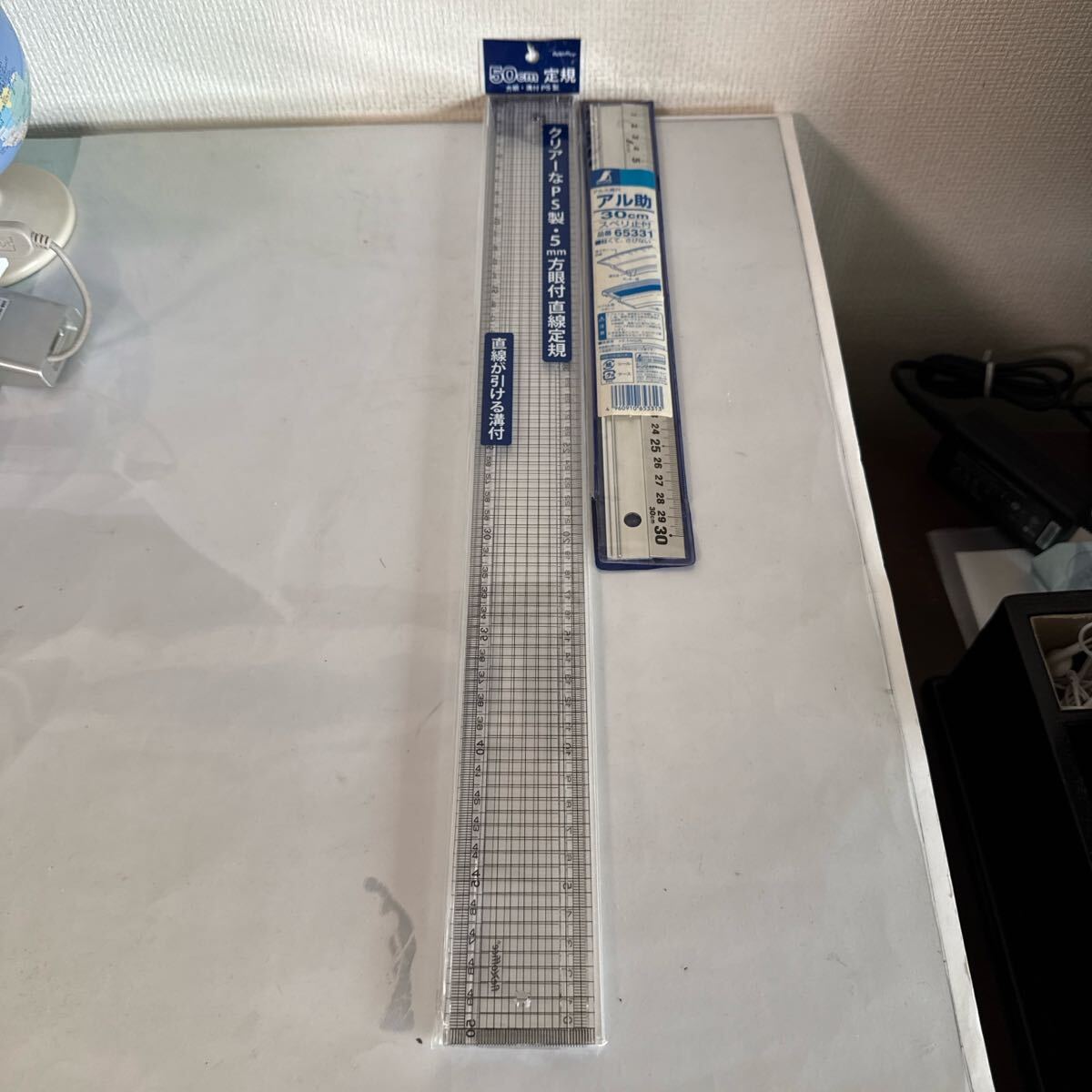50cmと30cmの定規セット、PS製とアルミ製で軽量。